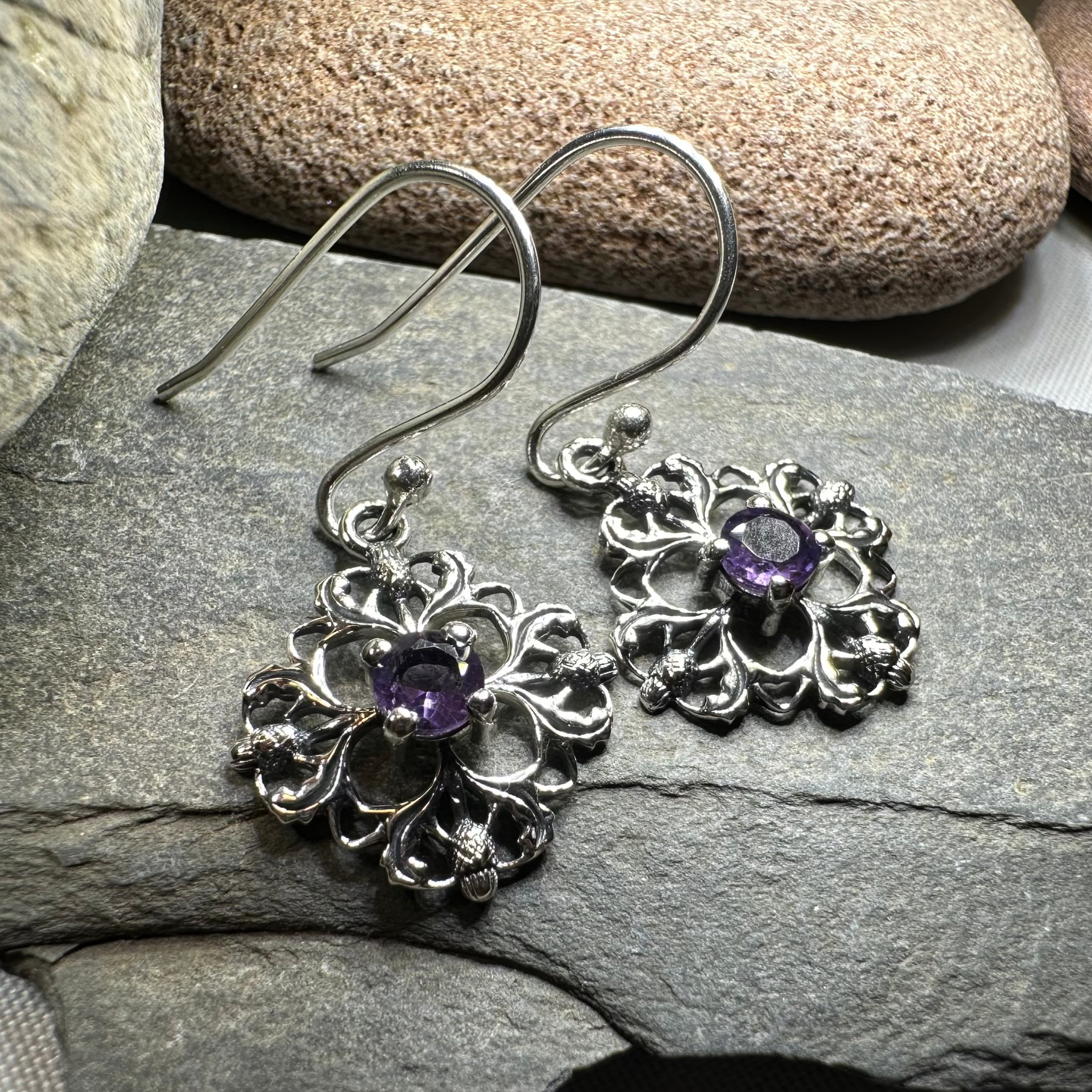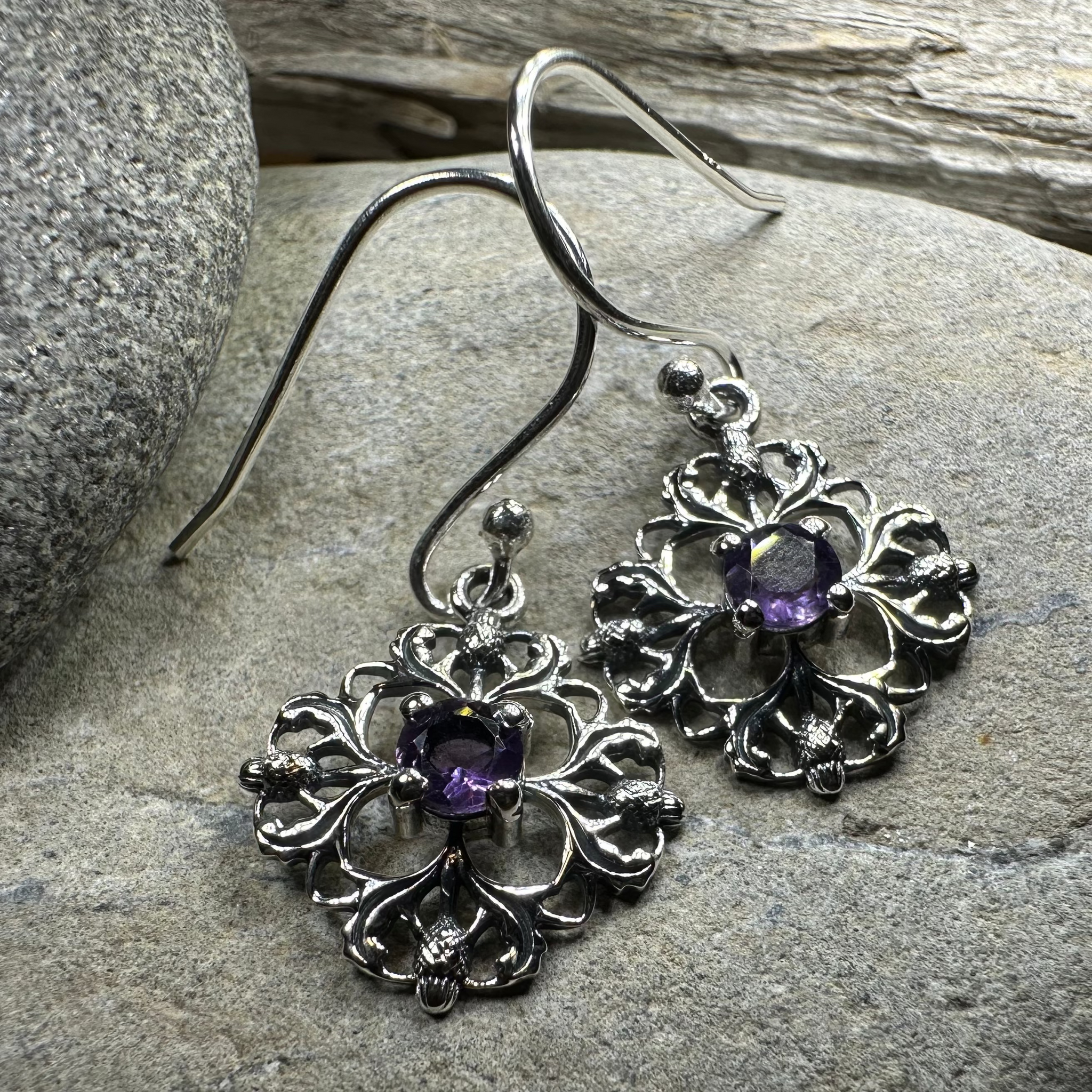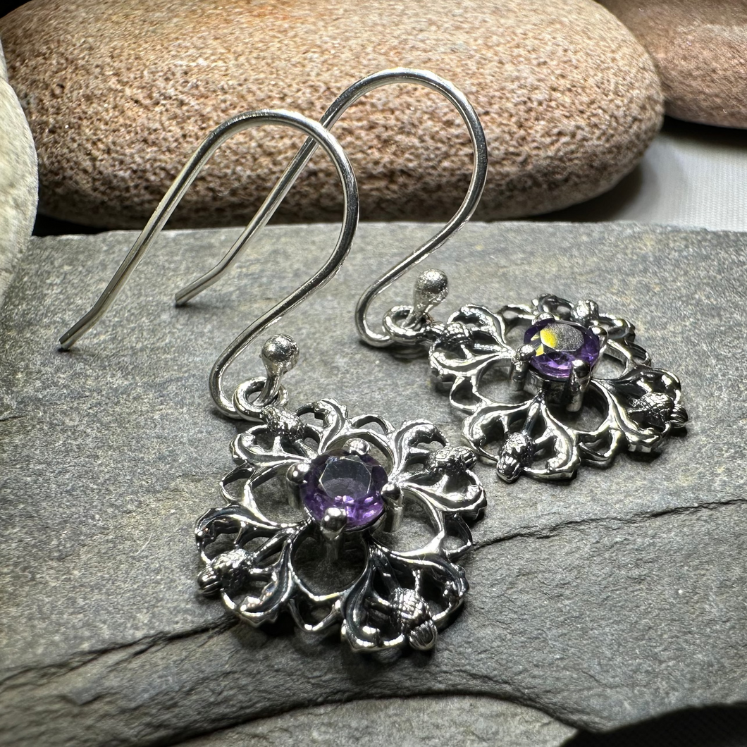 The Scottish Thistle has come a long way with its delicate flower heads, sharp thorns, and its defiant ability to flourish. Throughout Celtic regions, thistle represents bravery, devotion, durability, strength, and determination celebrated in this sterling silver hook earrings.