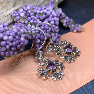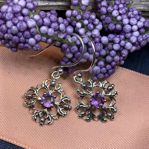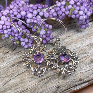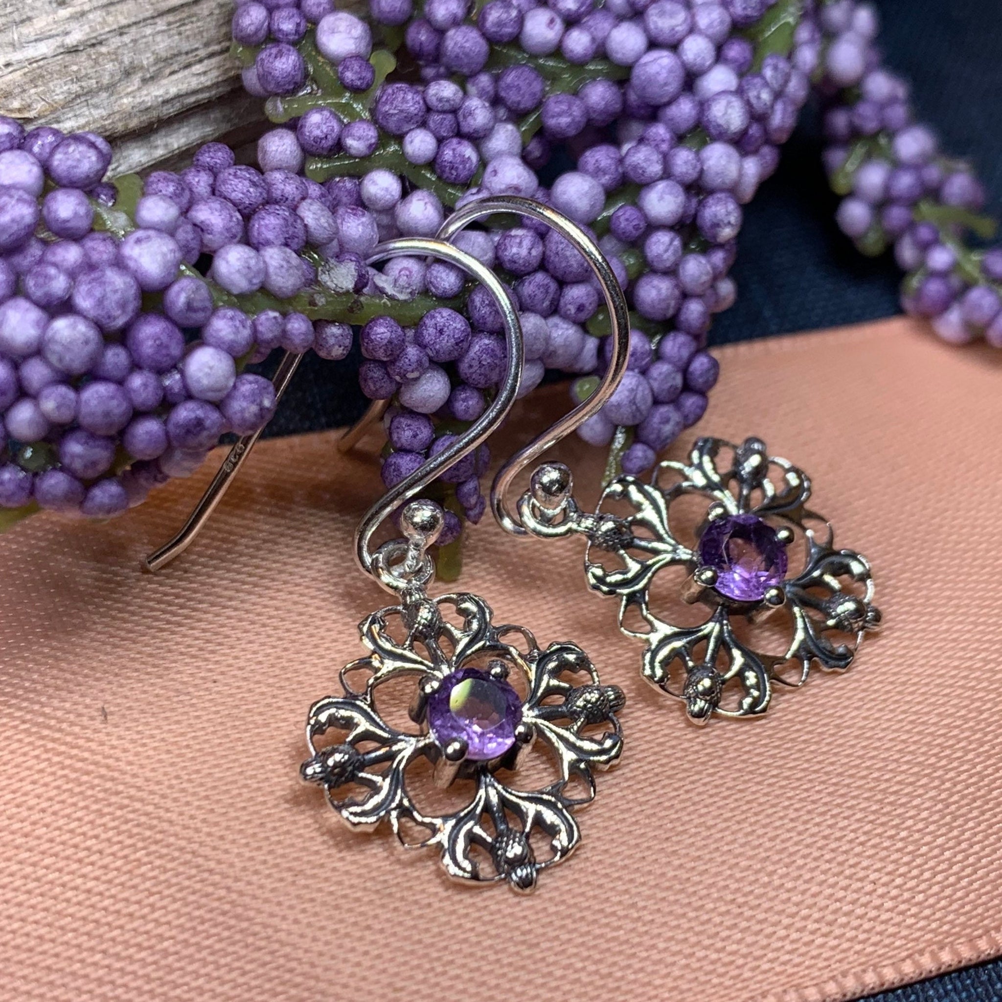 1/2" x 1/2" in size - crafted entirely of 925 sterling silver with authentic amethyst stones. Matching necklace available.