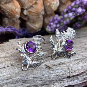 These earrings are beautifully highlighted with a one carat faceted amethyst stone - the beautiful design that pays tribute to Scottish culture.