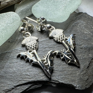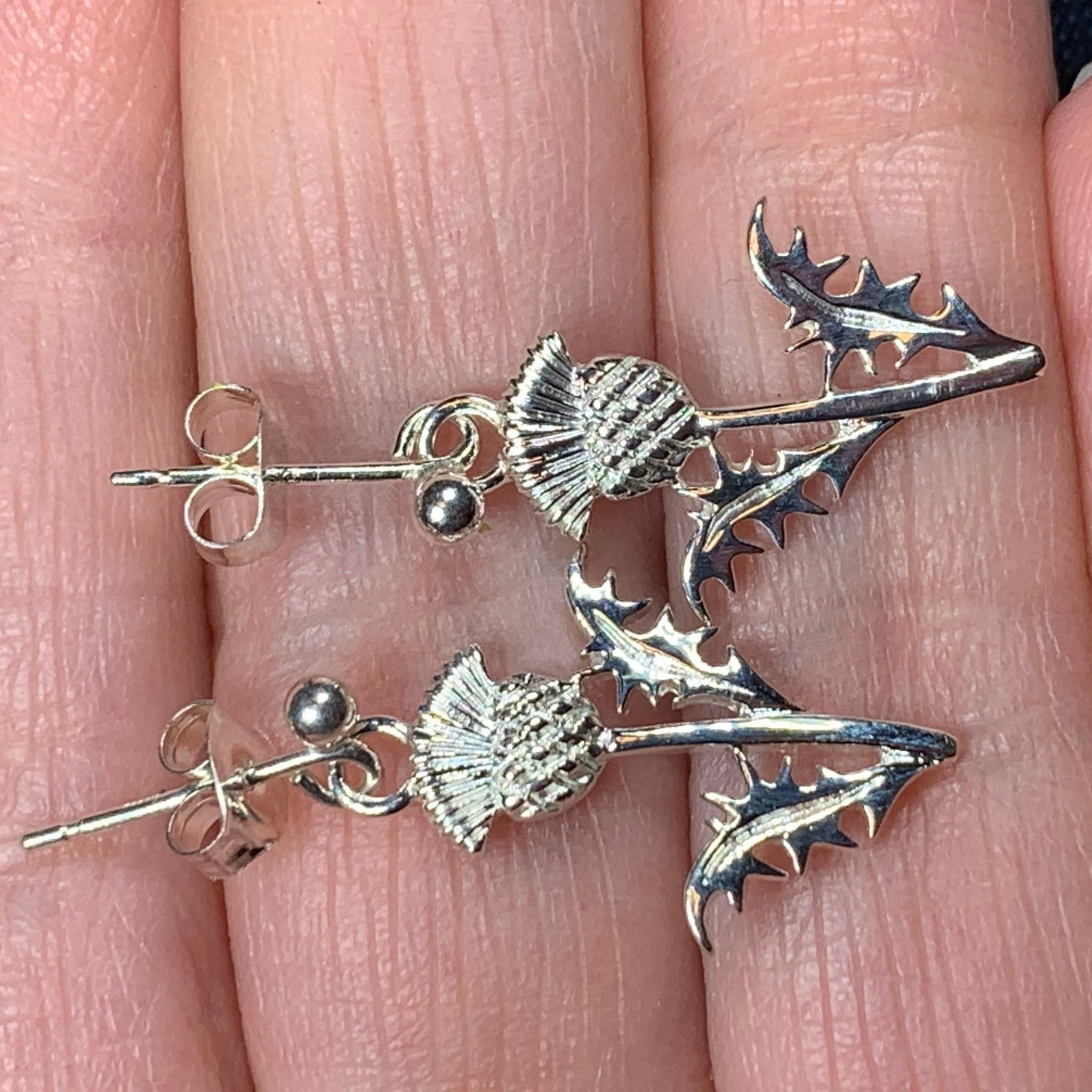 An attractive Scottish Thistle Sterling Silver Earrings using a traditional design featuring a Scottish Thistle, the national emblem of Scotland.