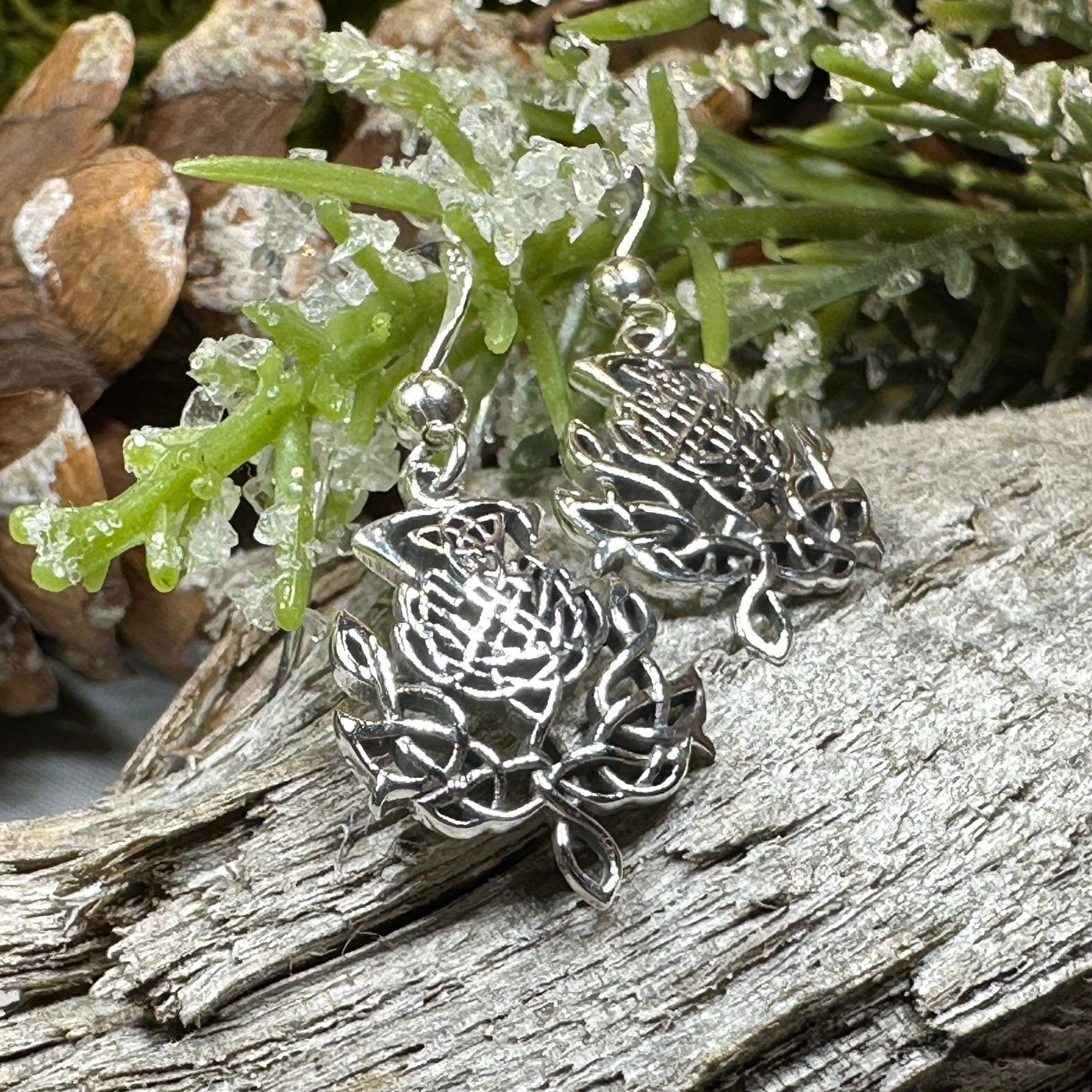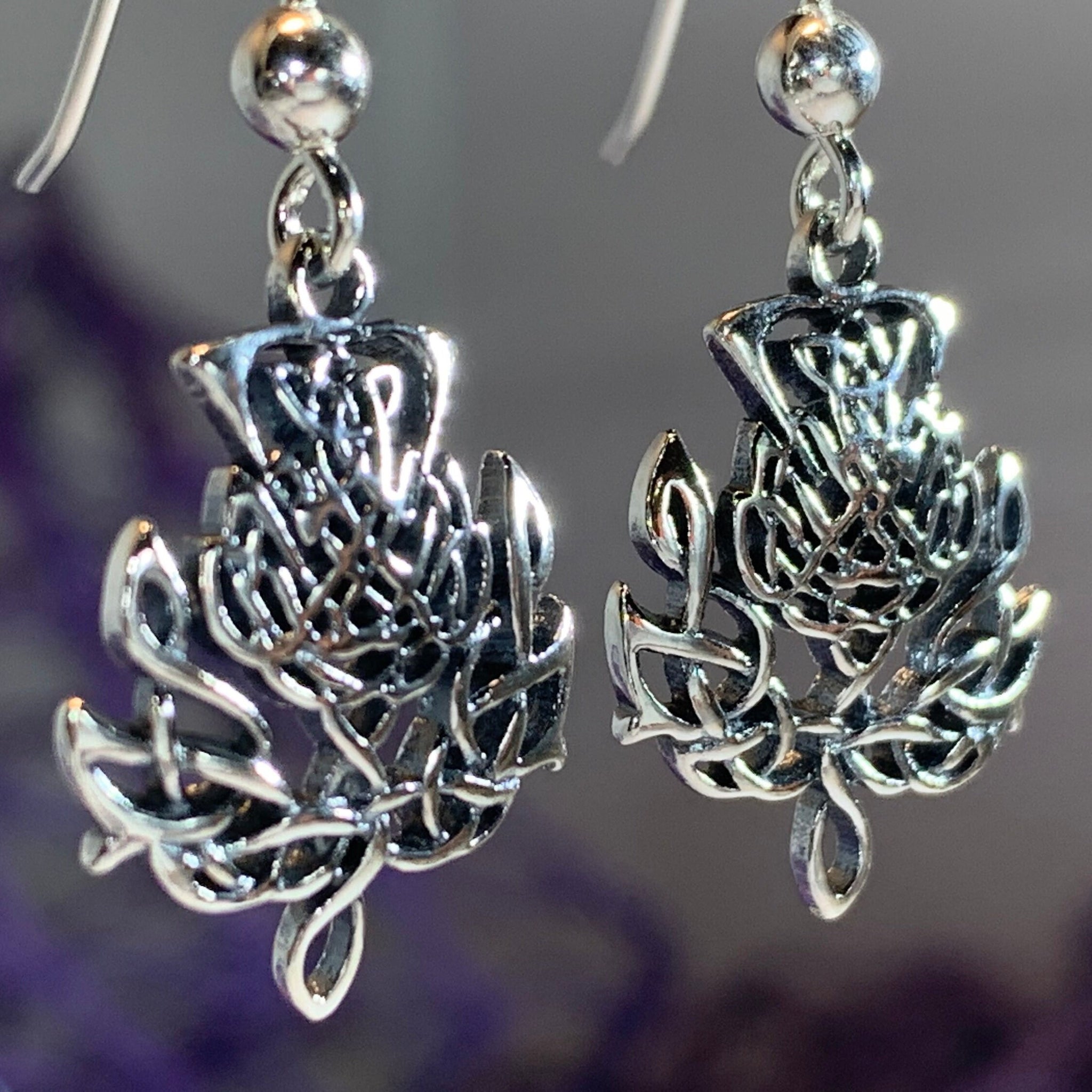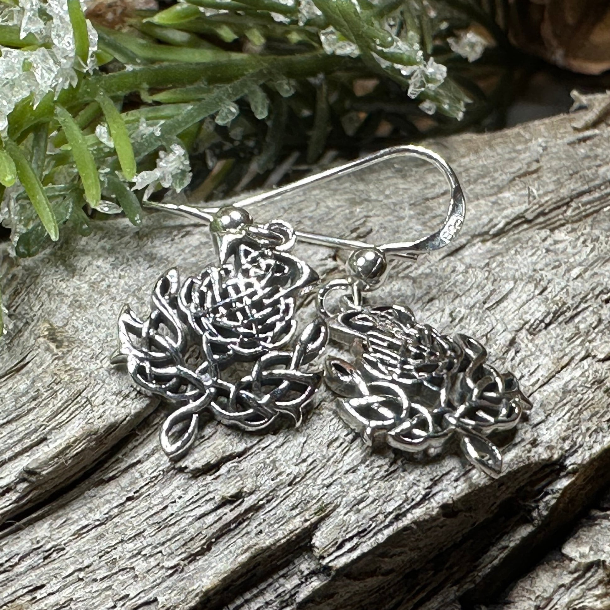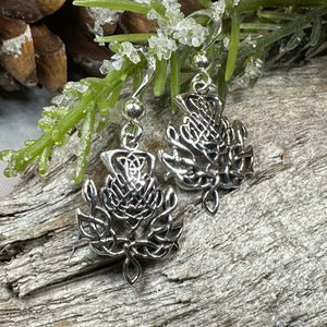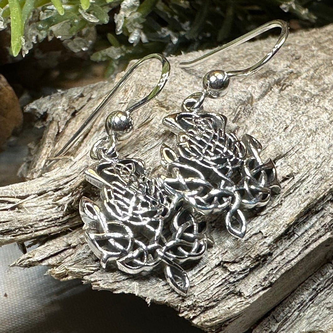 Solid sterling silver Celtic Thistle Dangle Earrings