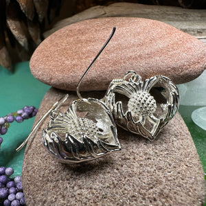 Solid sterling silver Realistic Thistle Dangle Earrings