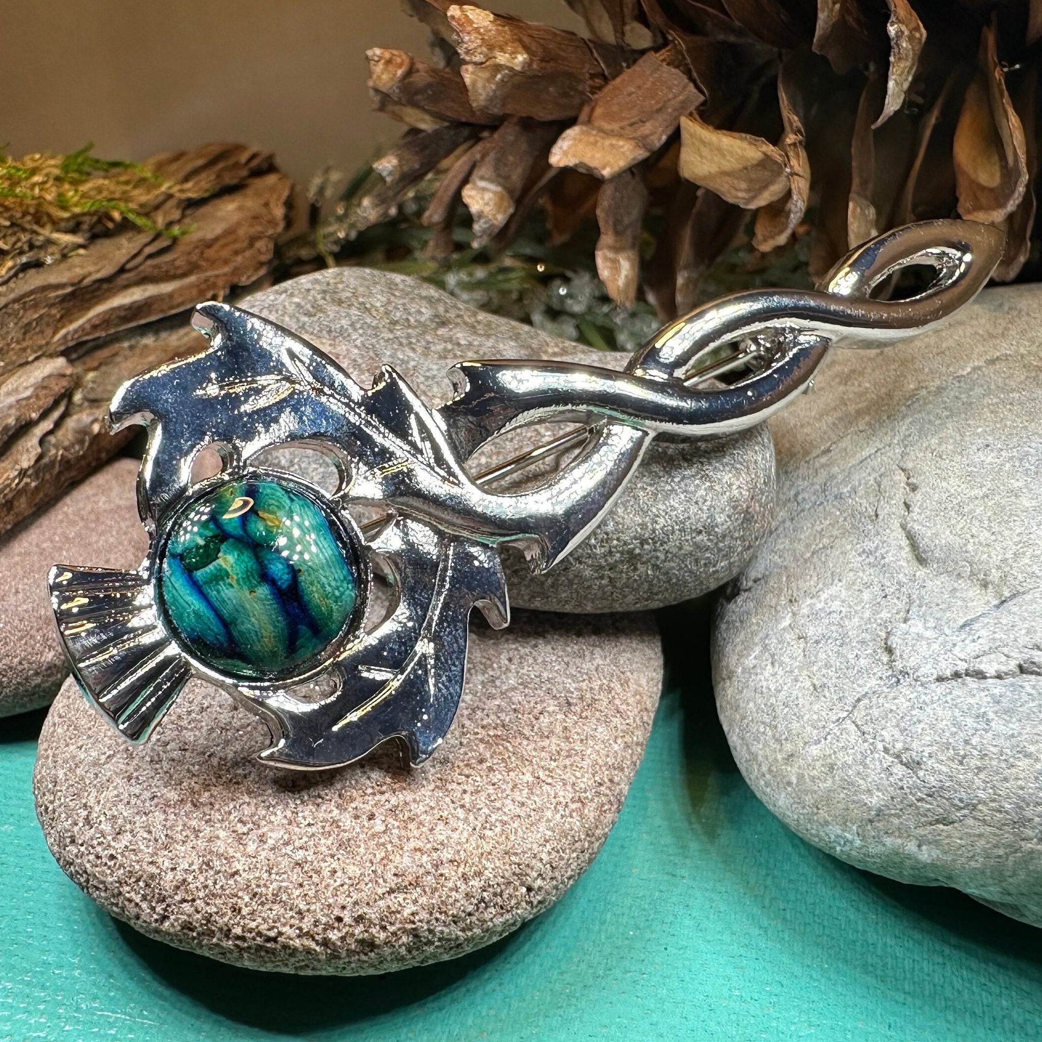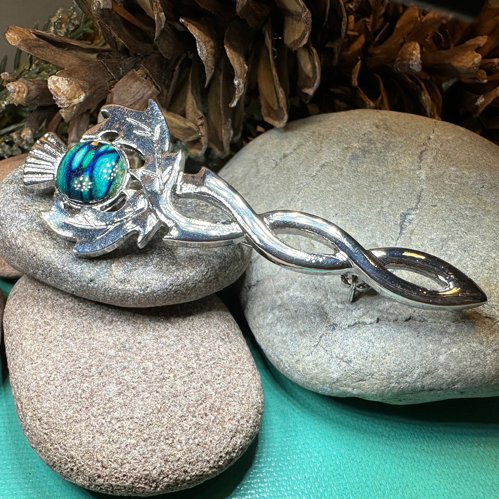 This thistle kilt pin in highly polished pewter will look beautiful on any sweater, coat or scarf - or kilt!
