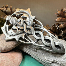 Masterfully crafted from lead-free pewter with a antiqued pewter finish, this Thistle Kilt Pin will definitely appeal to anyone with Scottish ancestry.