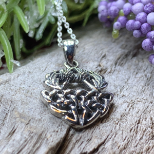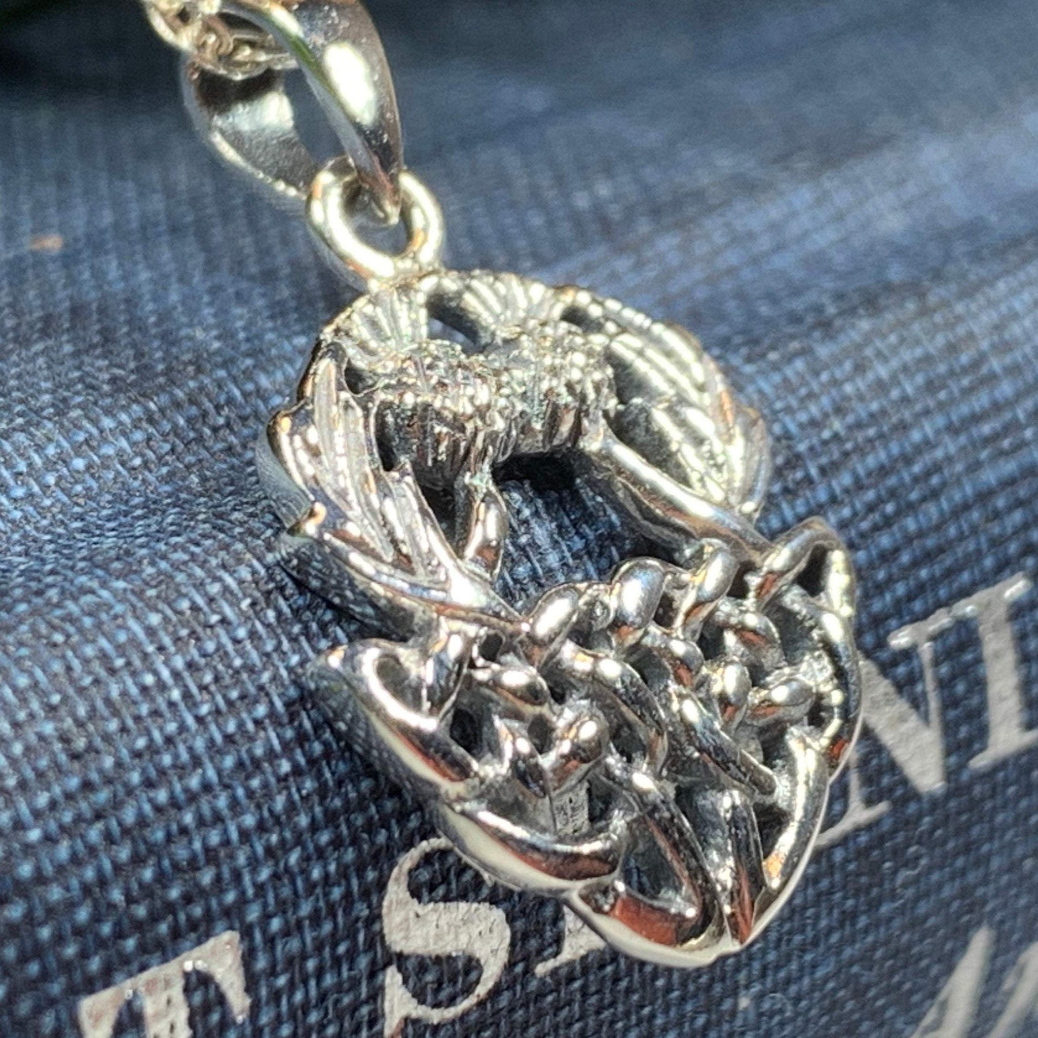 A highly attractive solid sterling silver Scottish Thistle Silver Pendant with a traditional design featuring the Scottish Thistle, the national emblem of Scotland.