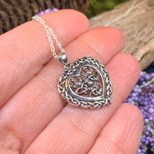 An attractive Scottish Triple Thistle Sterling Silver Pendant using a traditional design featuring the Scottish Thistle, the national emblem of Scotland, with three lovely trinity knots in a heart.