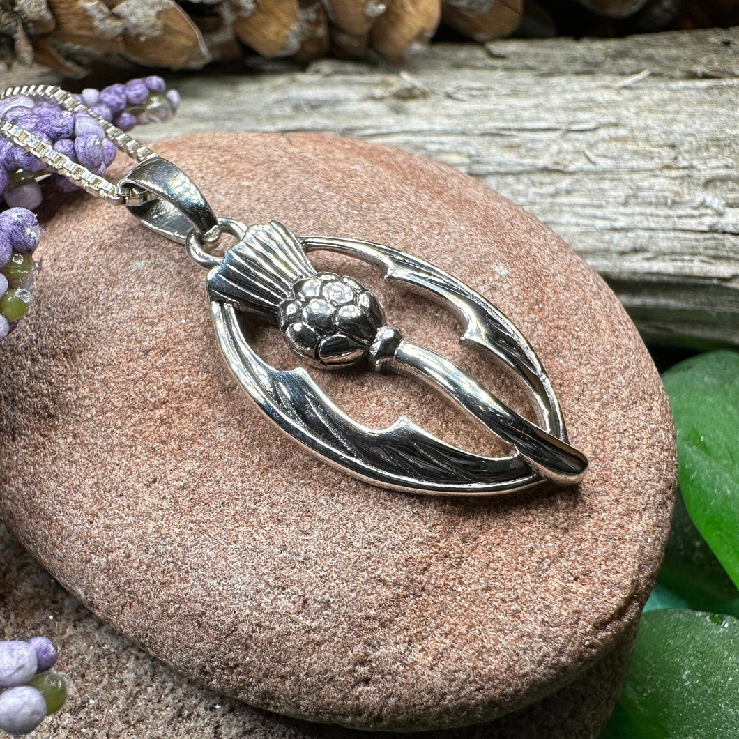 This beautifully detailed necklace features a proud thistle - an intricate sterling silver flower with realistic detailing that gives this piece a lovely bit of elegance.