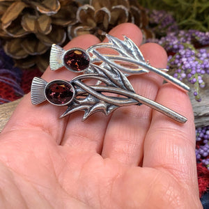 A truly beautiful pewter brooch pin with an gorgeous amethyst crystal - this thistle features beautiful detailing - with your choice of finish.