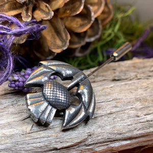 Unique antiqued finish pewter stick pin with a detailed thistle and leaves - can be worn on any ladies' dress or jacket or even as a groom's tie pin or lapel pin for a man's suit. A perfect love gift!