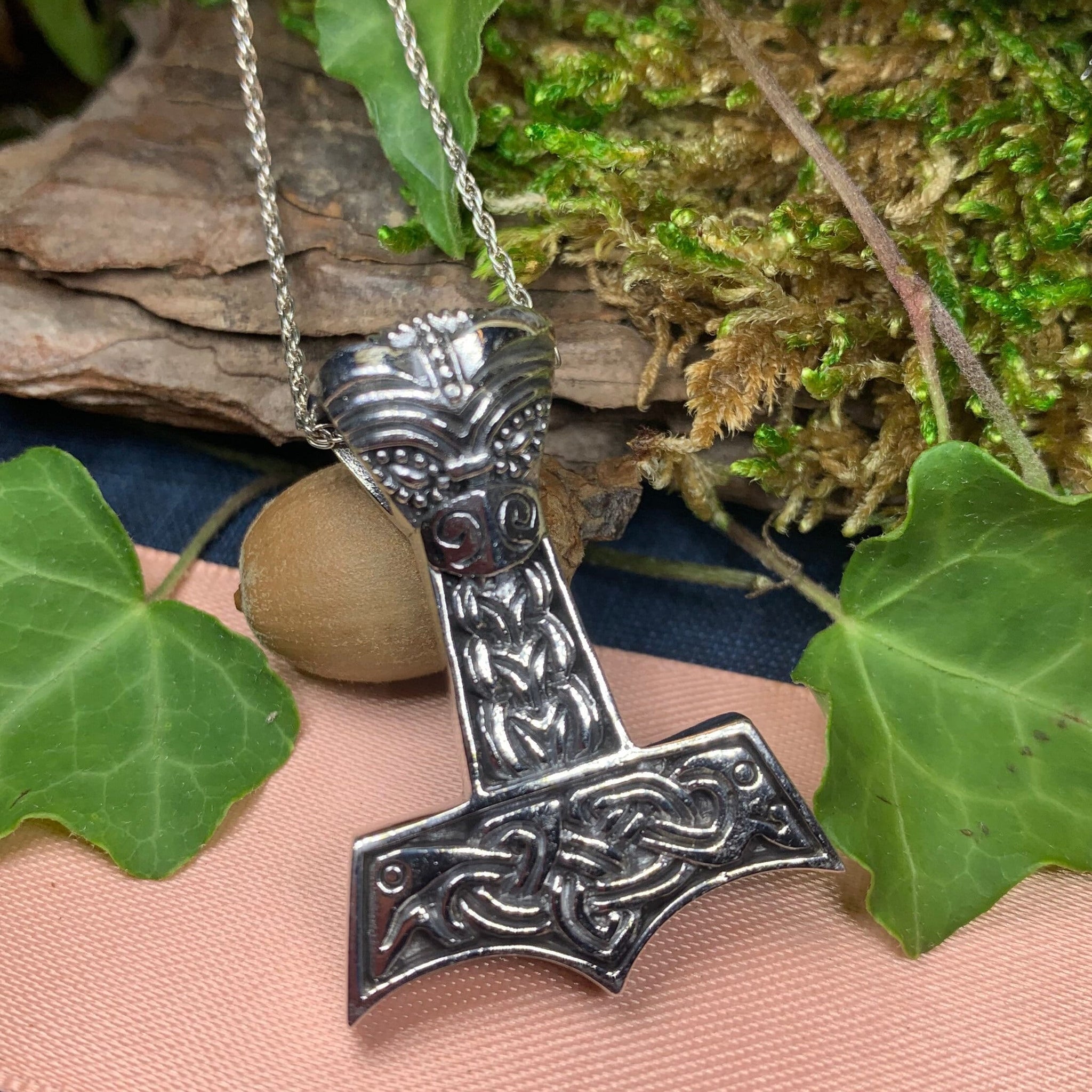 This fine sterling silver Thor's Hammer pendant is striking to look at and comfortable to wear. The design is raised with an antiqued background. This pendant makes a great gift for friends, loved ones, or yourself.