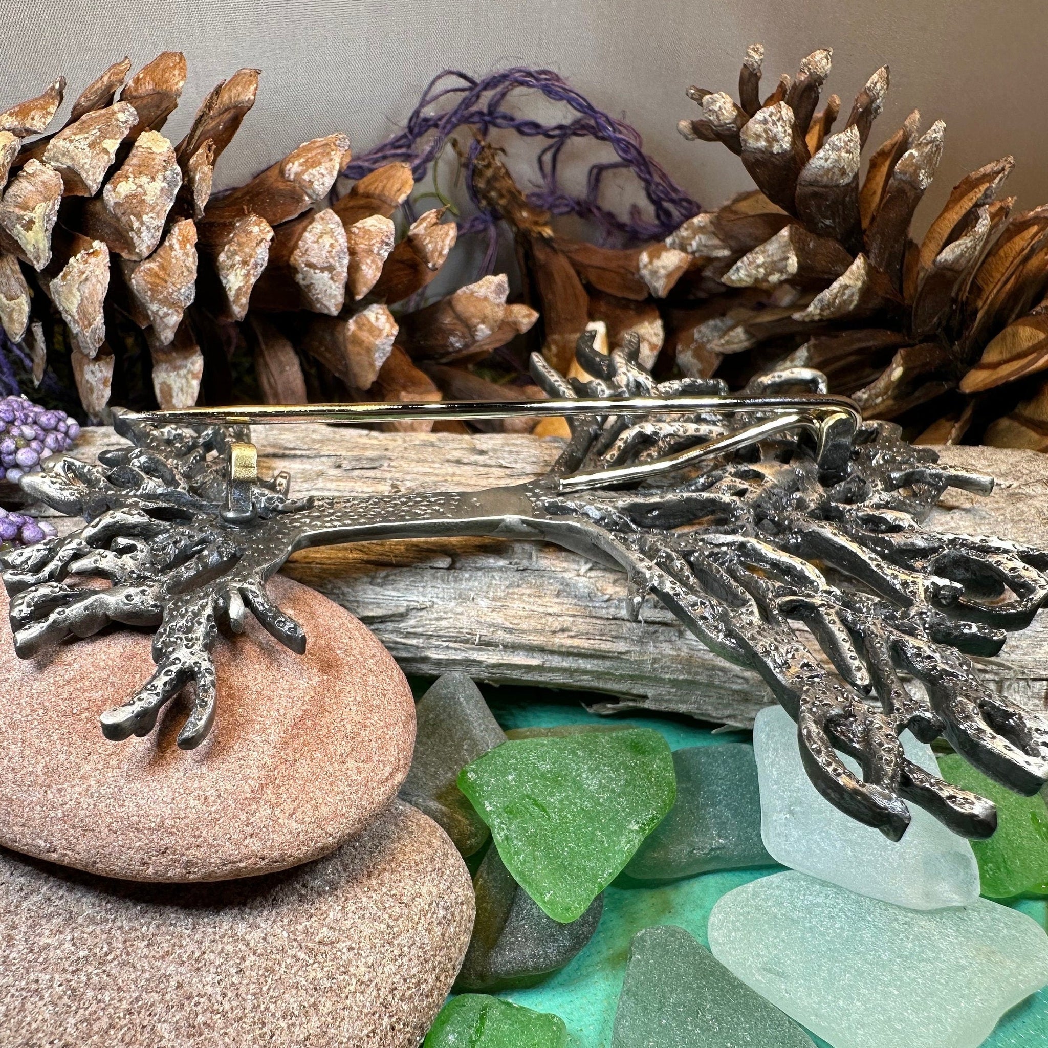 This beautiful brooch with its clean lines and Celtic design will win over the heart of any lover of Celtic culture. It would look wonderful on any coat, jacket, sweater or dress. A lovely way to say "I love you". Works wonderfully as a kilt or fly plaid pin too!