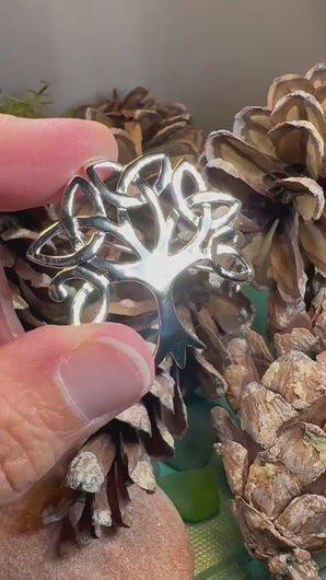 Combining the classic Celtic sybols of the Tree of Life with the Trinity Knot, this brooch is a elegant gift in solid sterling silver.