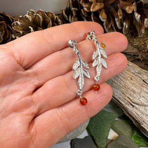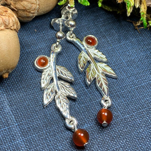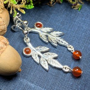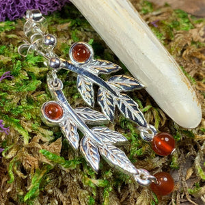 The Rowan Tree, or Tree of Life, is an important Celtic symbol representing the connection of all living things. These sterling silver earrings are adorned with red carnelian "berries" to create the majestic beauty of this mystical tree - known as the Goddess Tree!