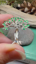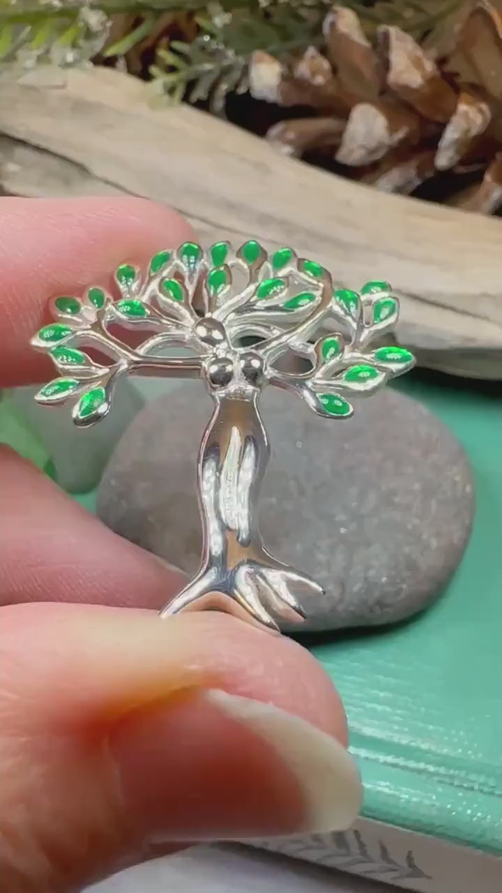 The anient Tree of Life is depicted as the goddess - a tribute to the importance of women in Celtic culture. The green enamel work for the leaves makes this piece extra special.