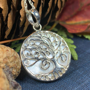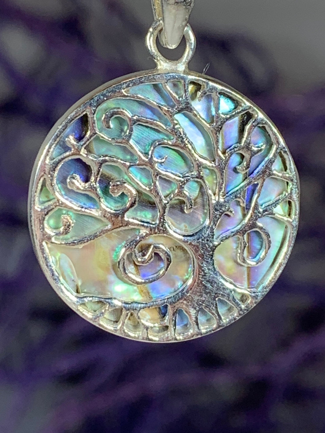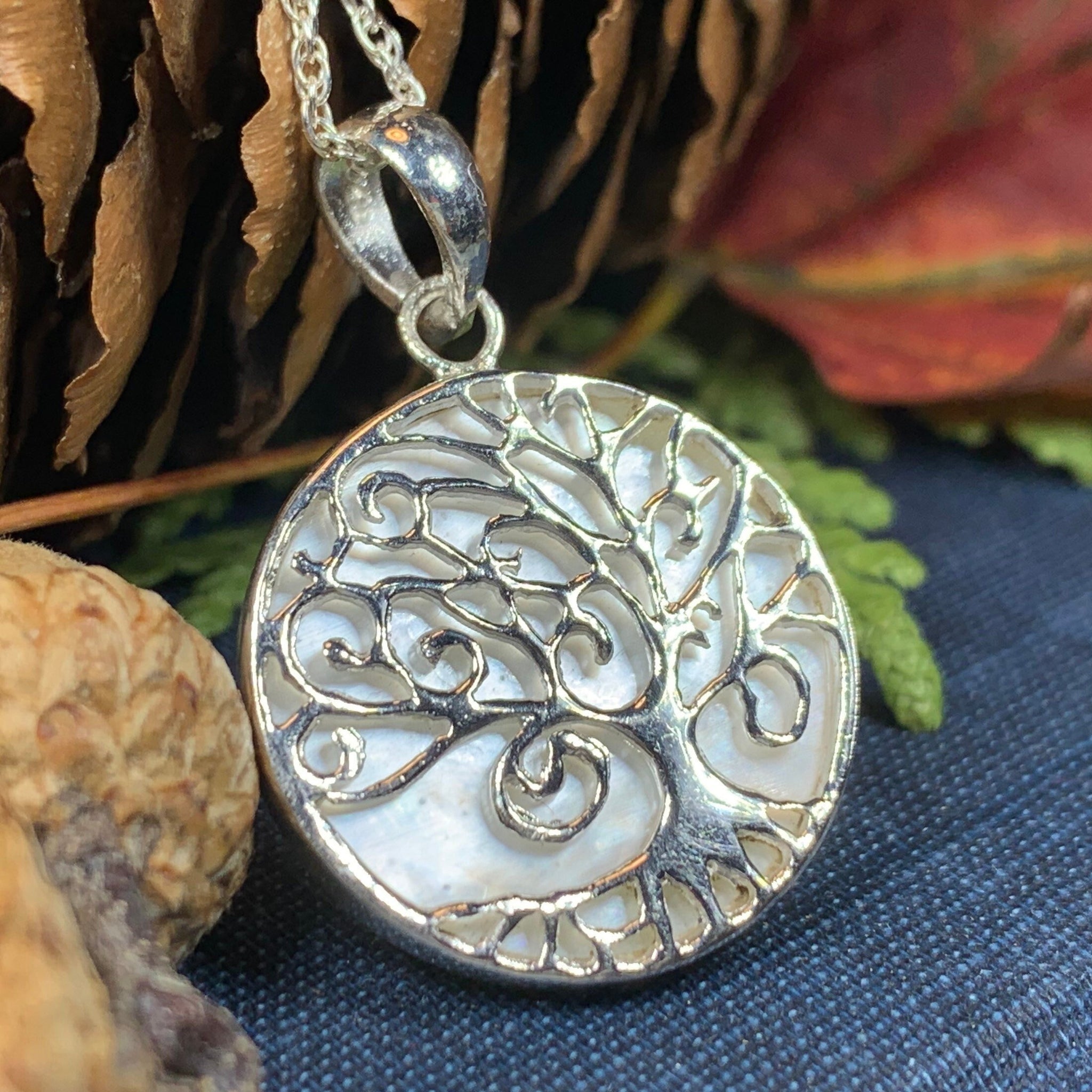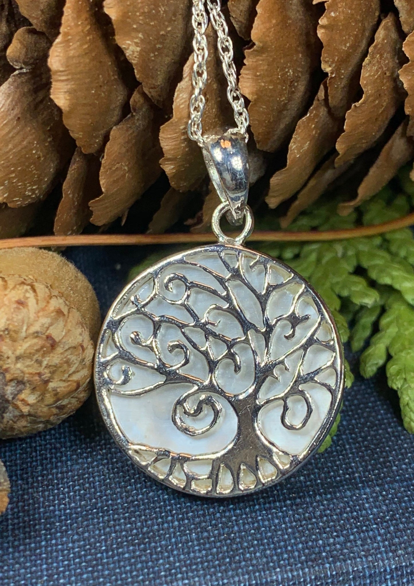 Sterling silver and your choice of natural shell on a sterling silver chain -- The Tree of Life is an ancient symbol of the never-ending cycle of life and is usually associated with female power. This tree with its simple lines and detail is a perfect symbol for any woman that is the center of life and joy in your life.