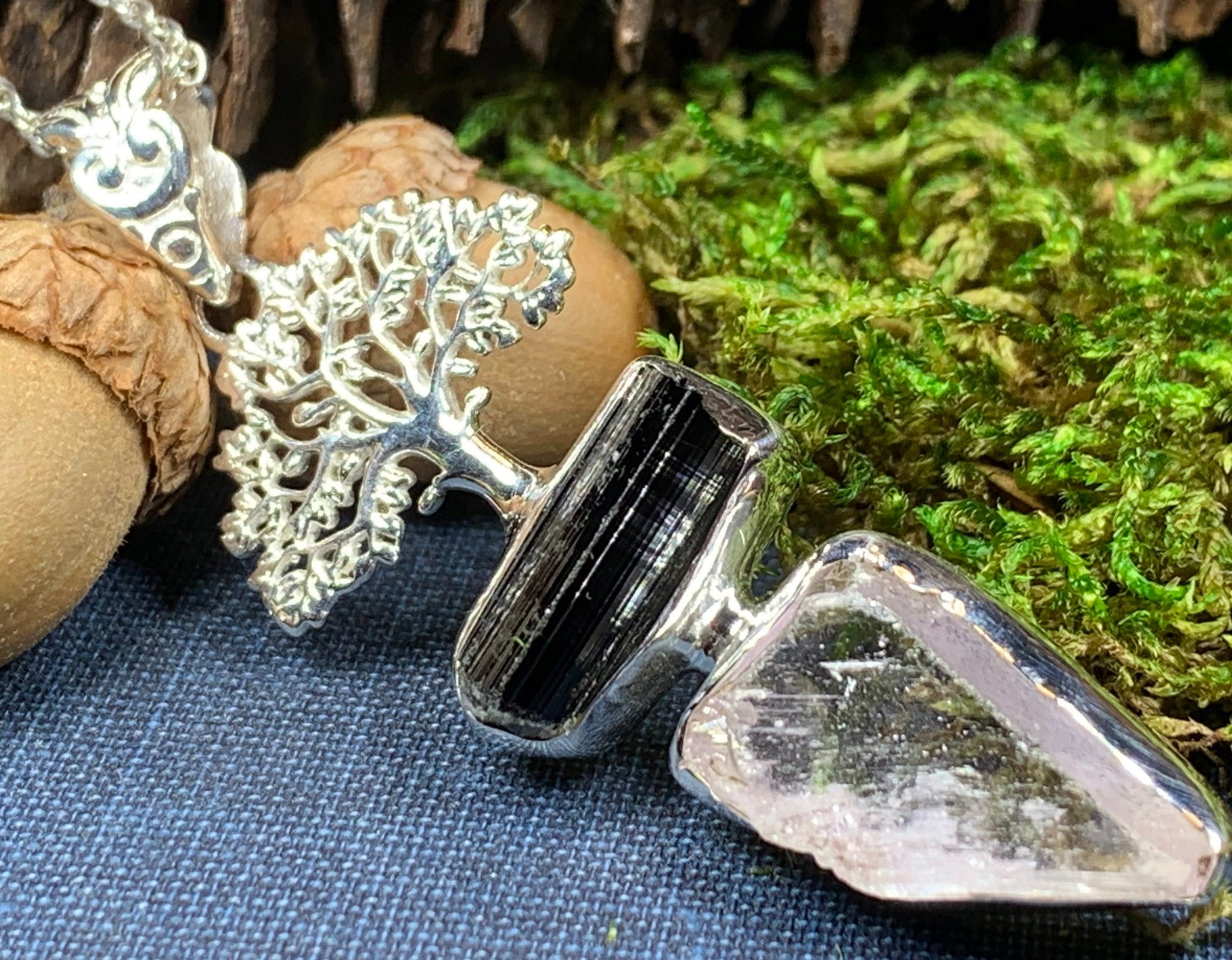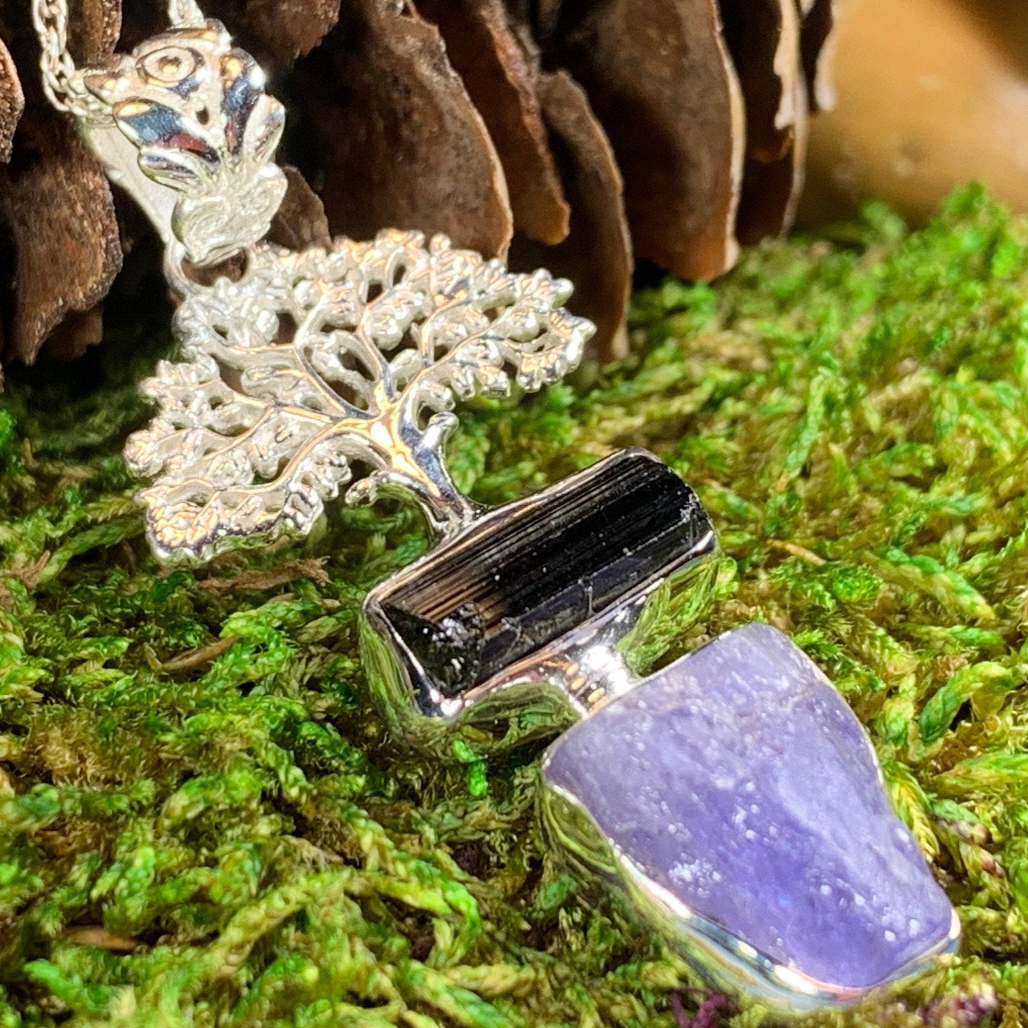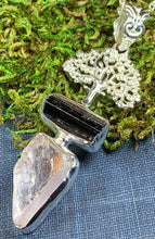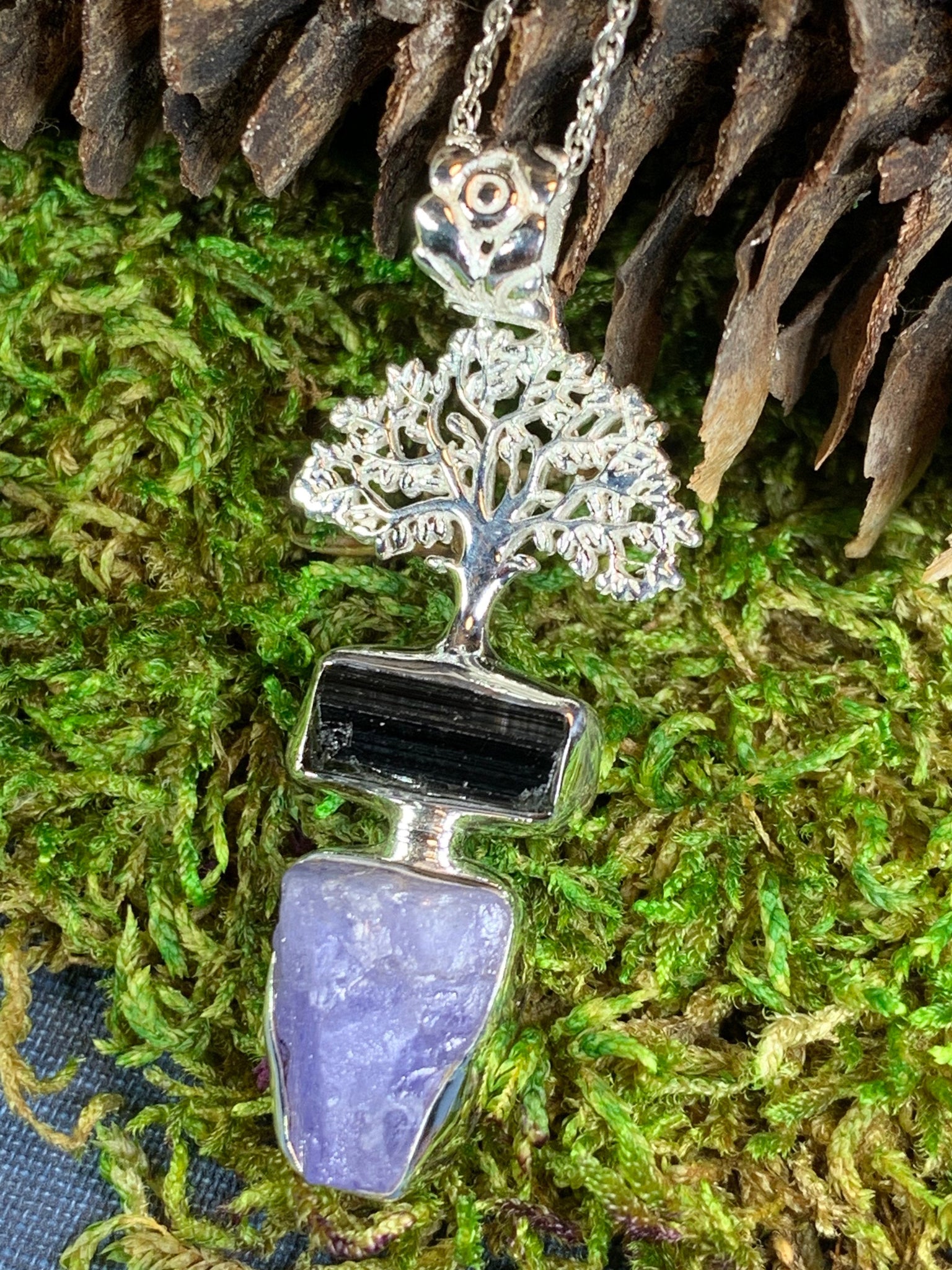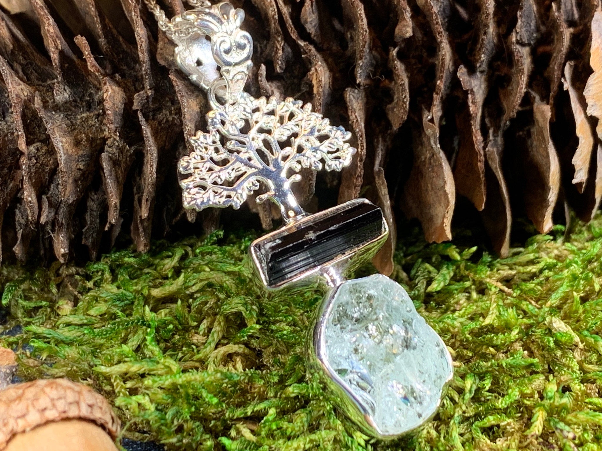 A beautiful, high quality 1 1/2" x 3/4" solid sterling silver pendant with natural raw gemstone of your choice on an 18" sterling silver chain. Hallmarked 925