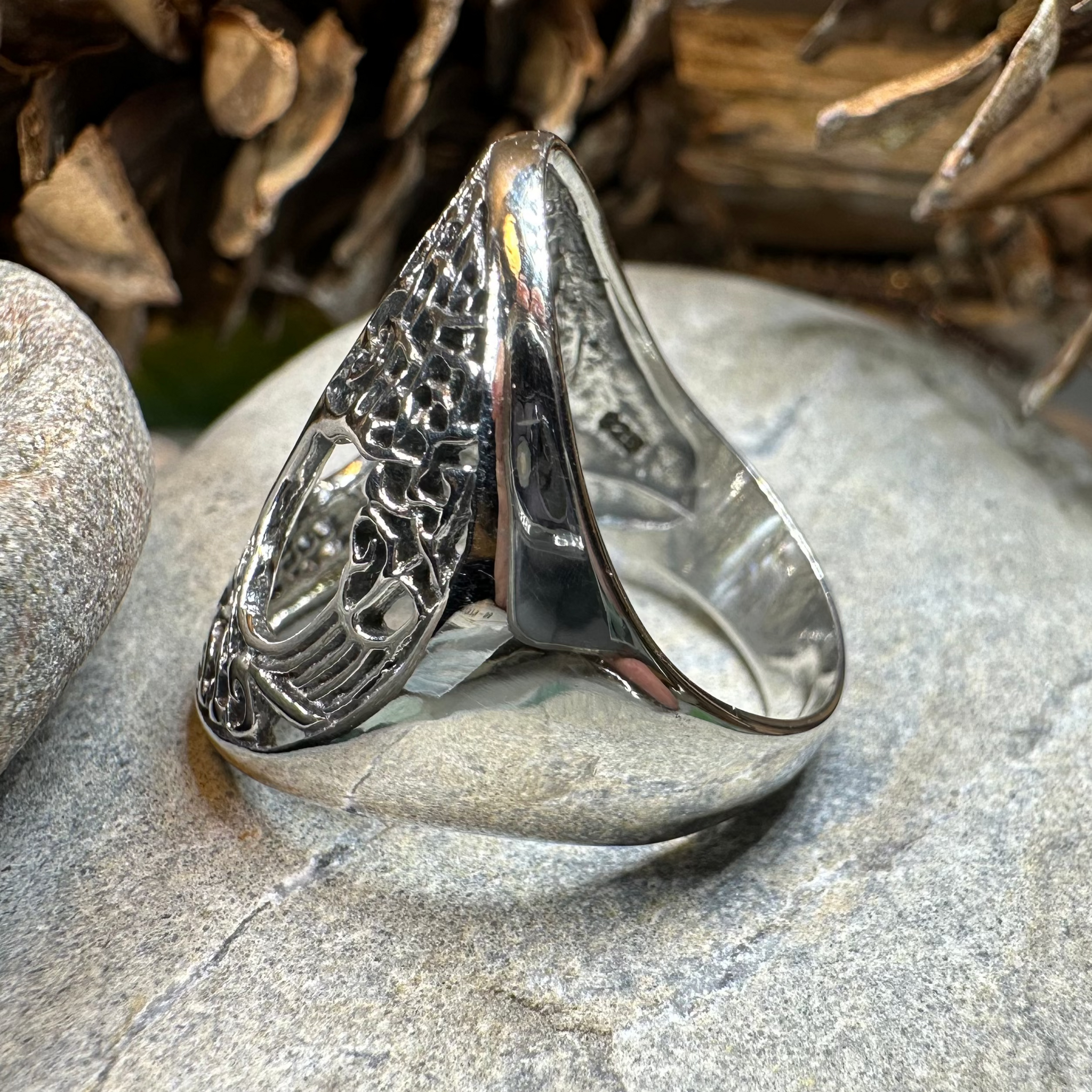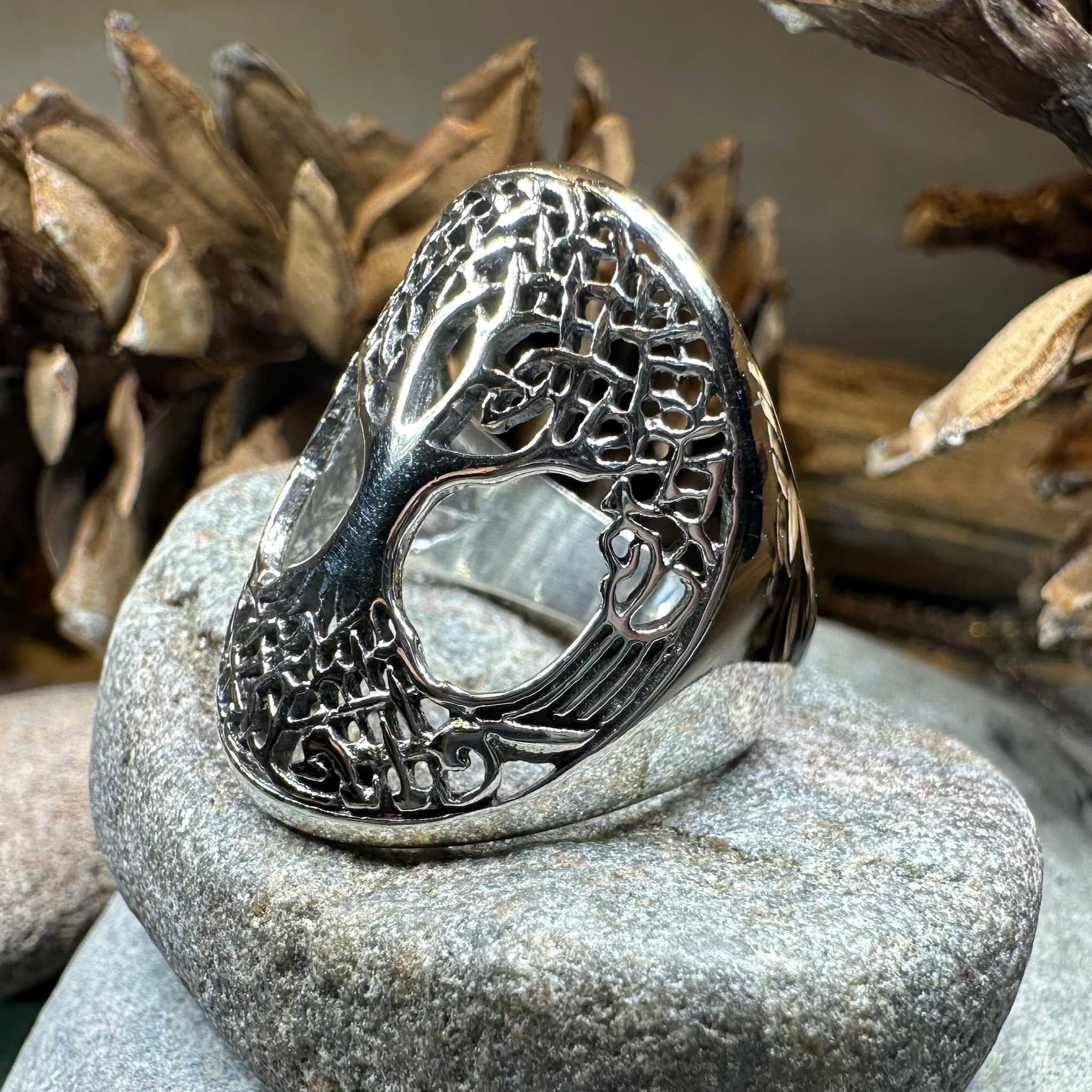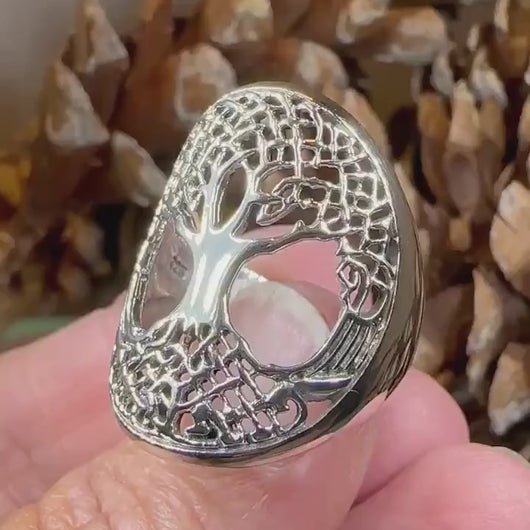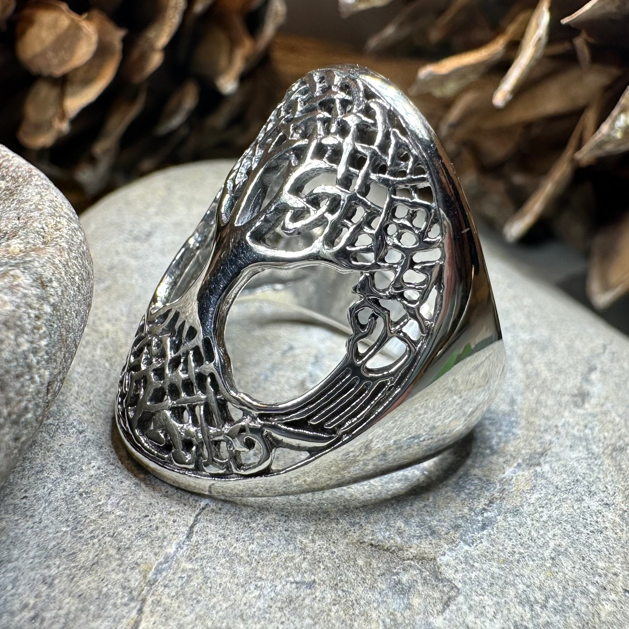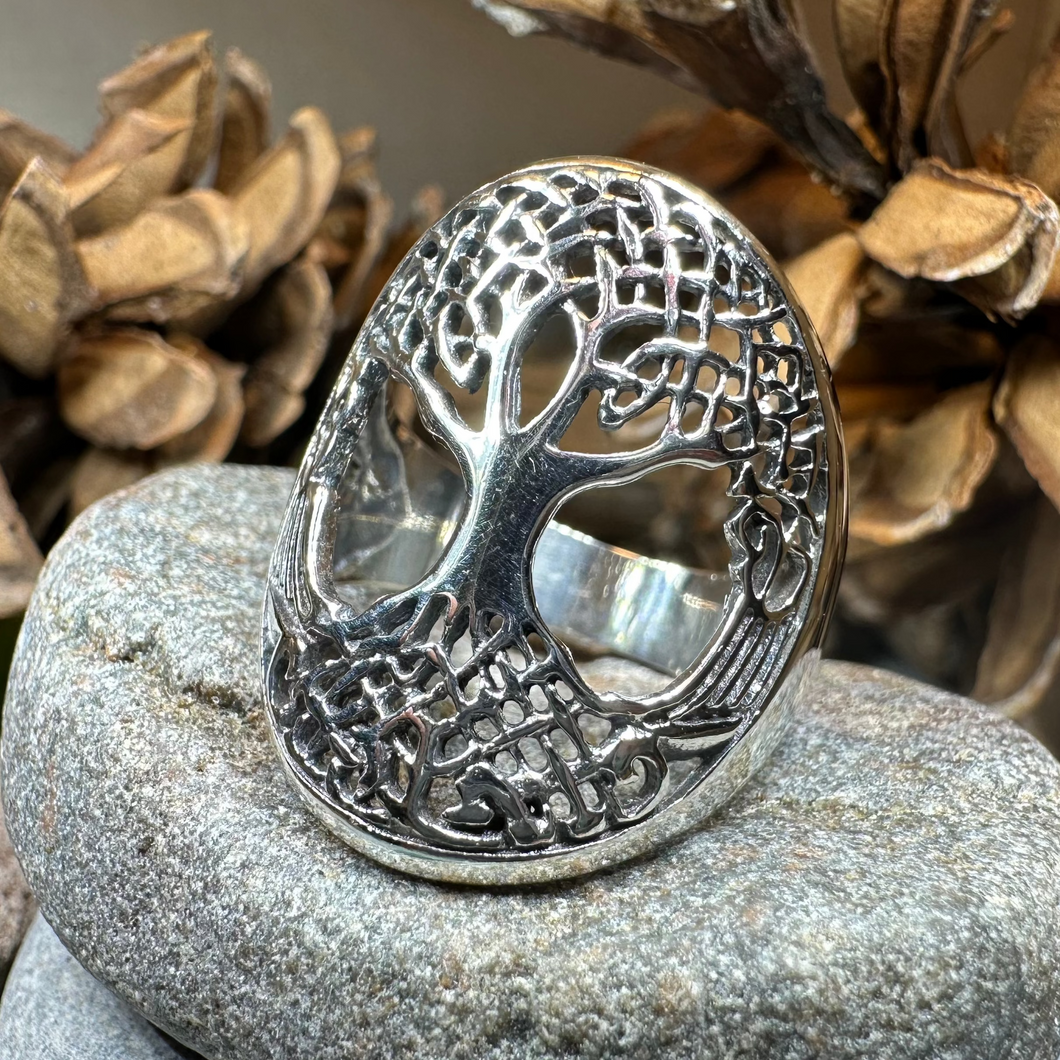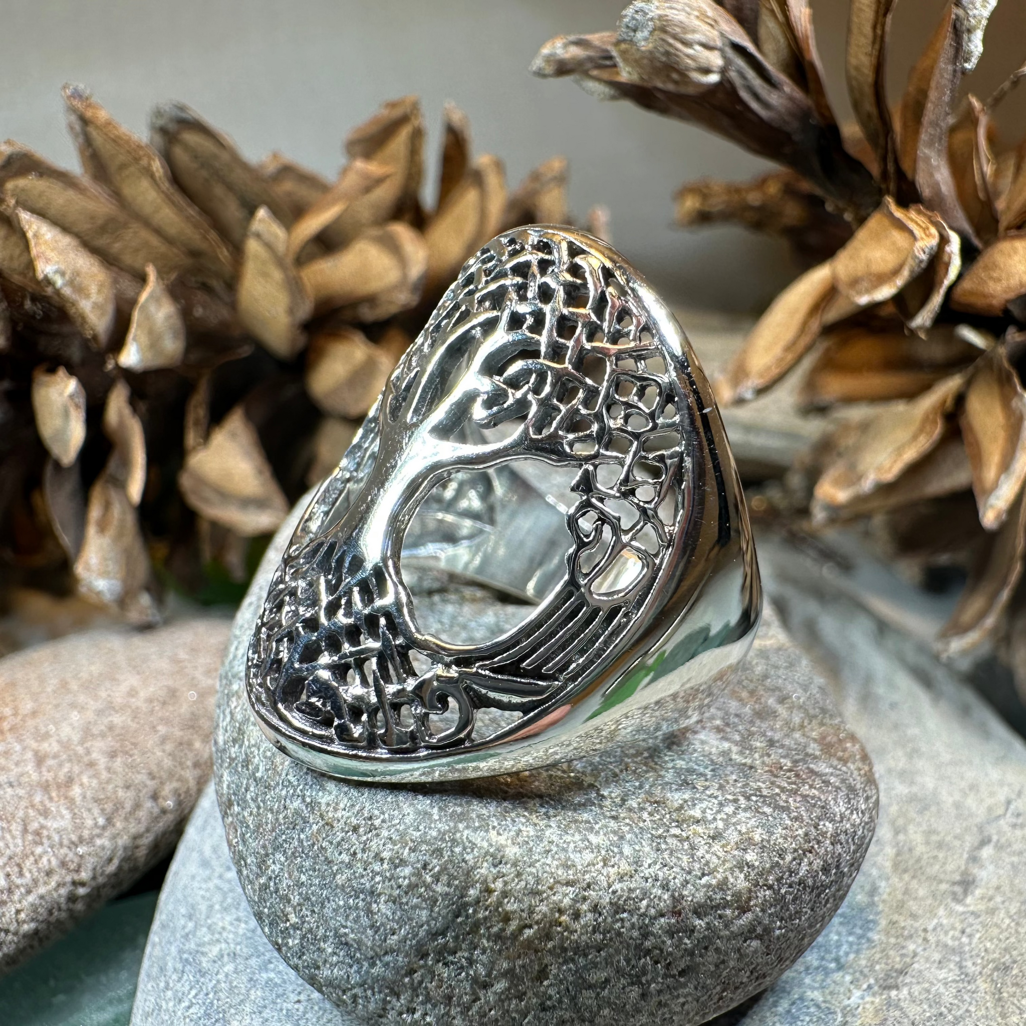 A unique design combining the traditional elements of a tree of life in a wrap around design - beautiful highly polished sterling silver with Celtic braid work around the bottom.