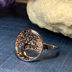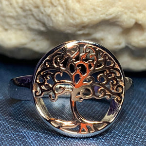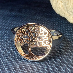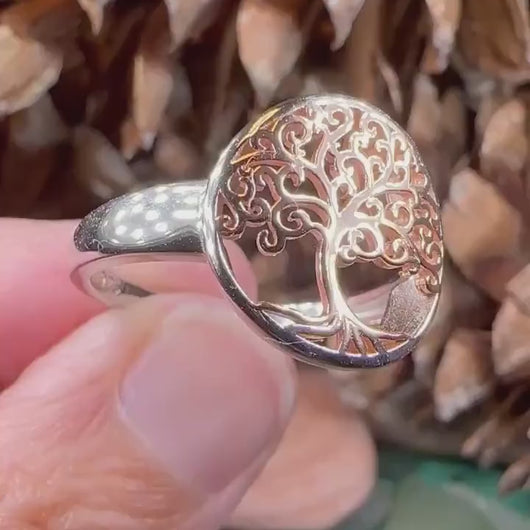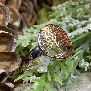 A unique handmade design combining the traditional elements of a tree of life in an circle with 14k rose gold plate - beautiful highly polished sterling silver and 14k rose gold plate.
