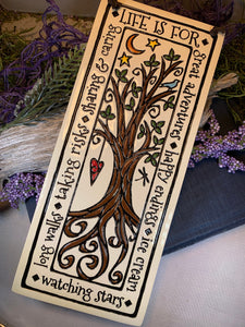 Blessing: Life is for great adventures, happy endings, ice cream, watching stars, long walks, taking risks, sharing and caring". Measures 3.5" x 8.5".