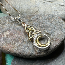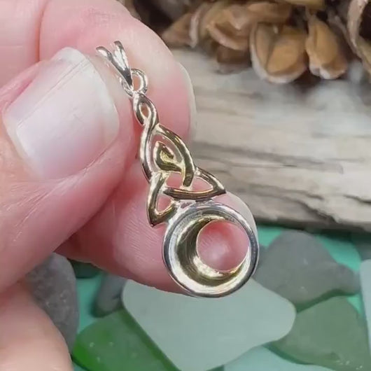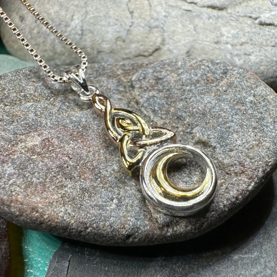 Solid sterling silver Celtic Mother's Knot Pendant with 14k yellow and rose gold detail - Dainty but commanding, this pendant shows the Motherhood Knot and the Crescent Moon (symbol of growth).