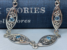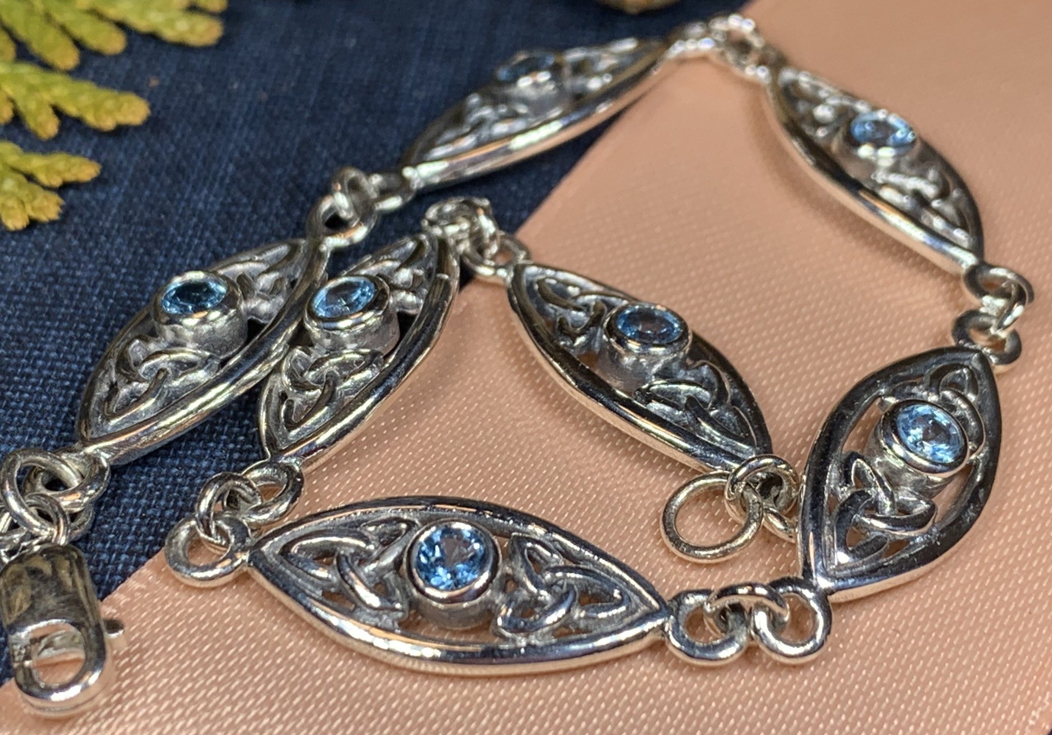 Sterling Silver Celtic Trinity Knot Bracelet with authentic sky blue topaz gemstones.