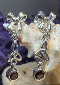 Beautiful Celtic Trinity Knot earrings topped with an elegant bow making these earrings unique and feminine with a lovely faceted gemstone of your choice.