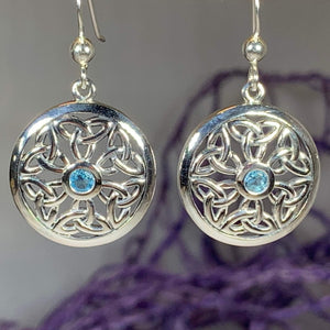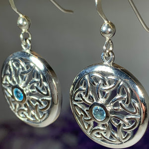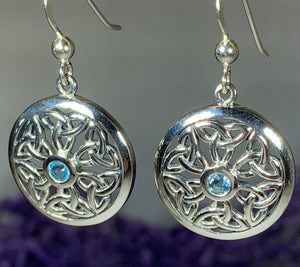 Evokes the shape of a Celtic trinity knot in a perfectly balanced arrangement of stunning, pure sterling silver with an authentic sky blue topaz center stone - a Celtic knot to symbolize strength and independence.