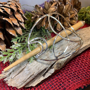 Celebrate Celtic life with this beautiful black leather hair slide with pewter Celtic Norse design will make any hairstyle look elegant and beautiful! Embossed with an intricate Celtic design and a pewter focal piece based on an authentic historic Viking brooch.