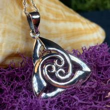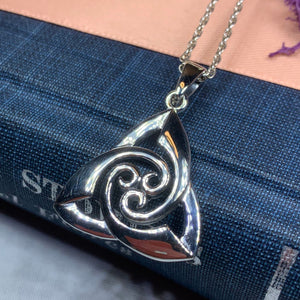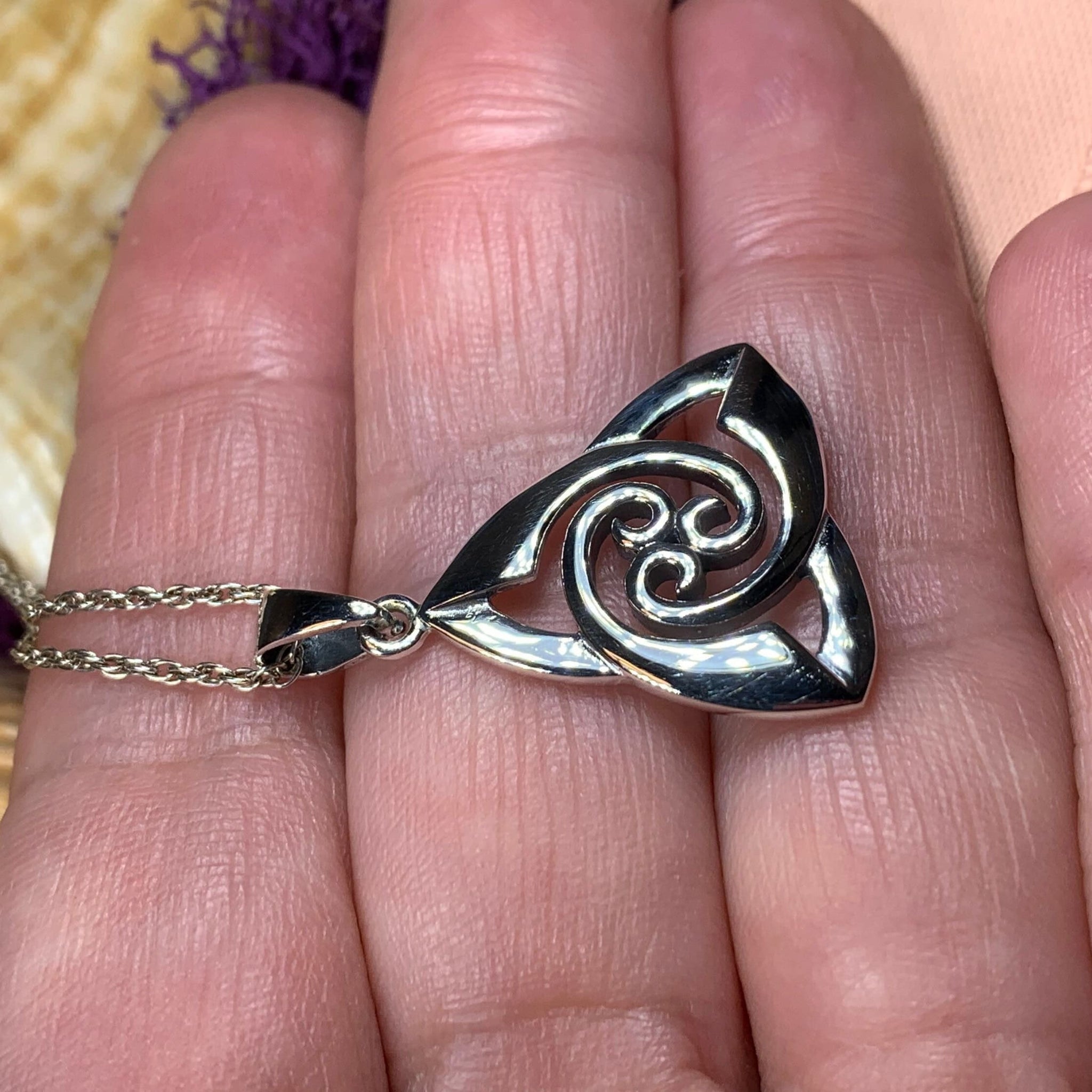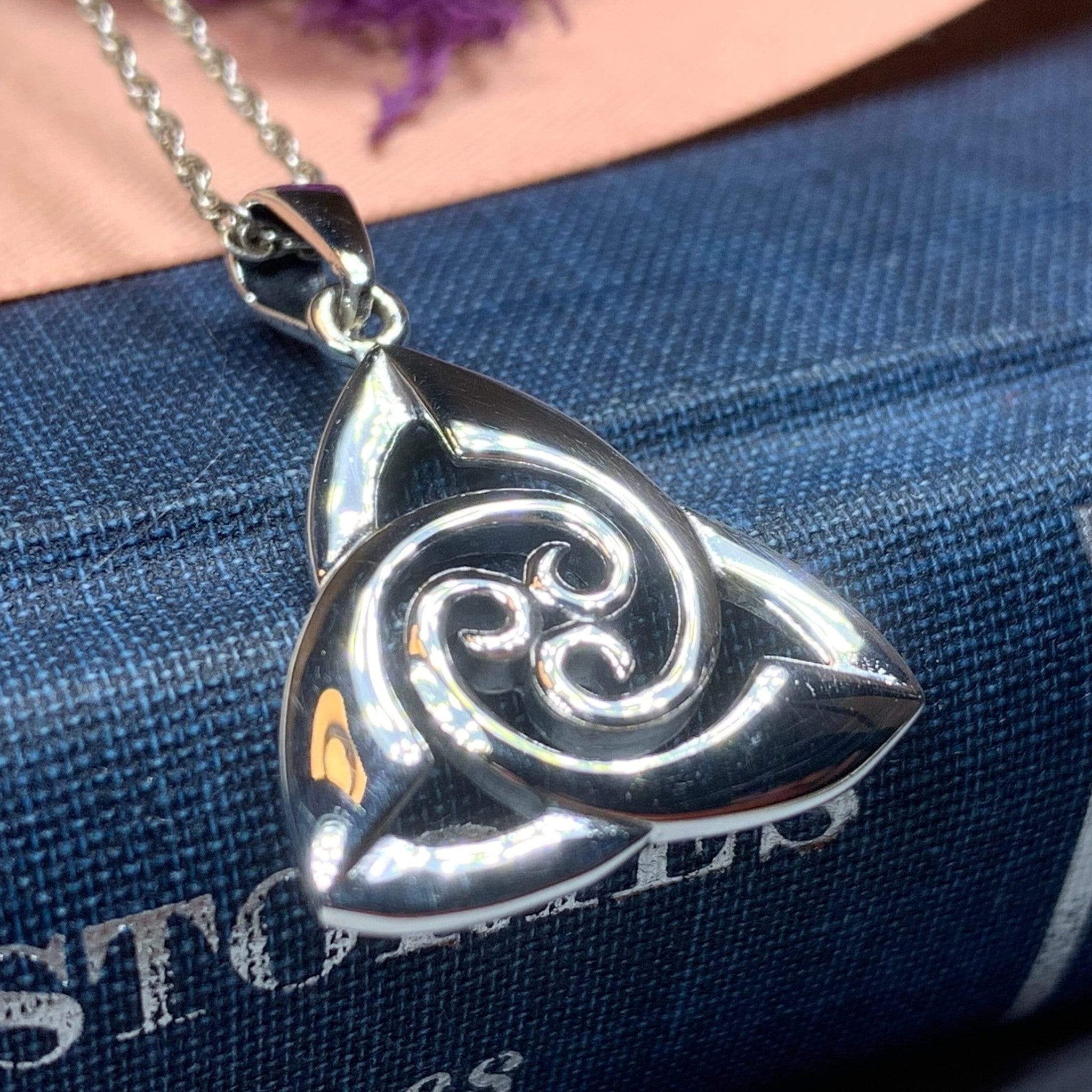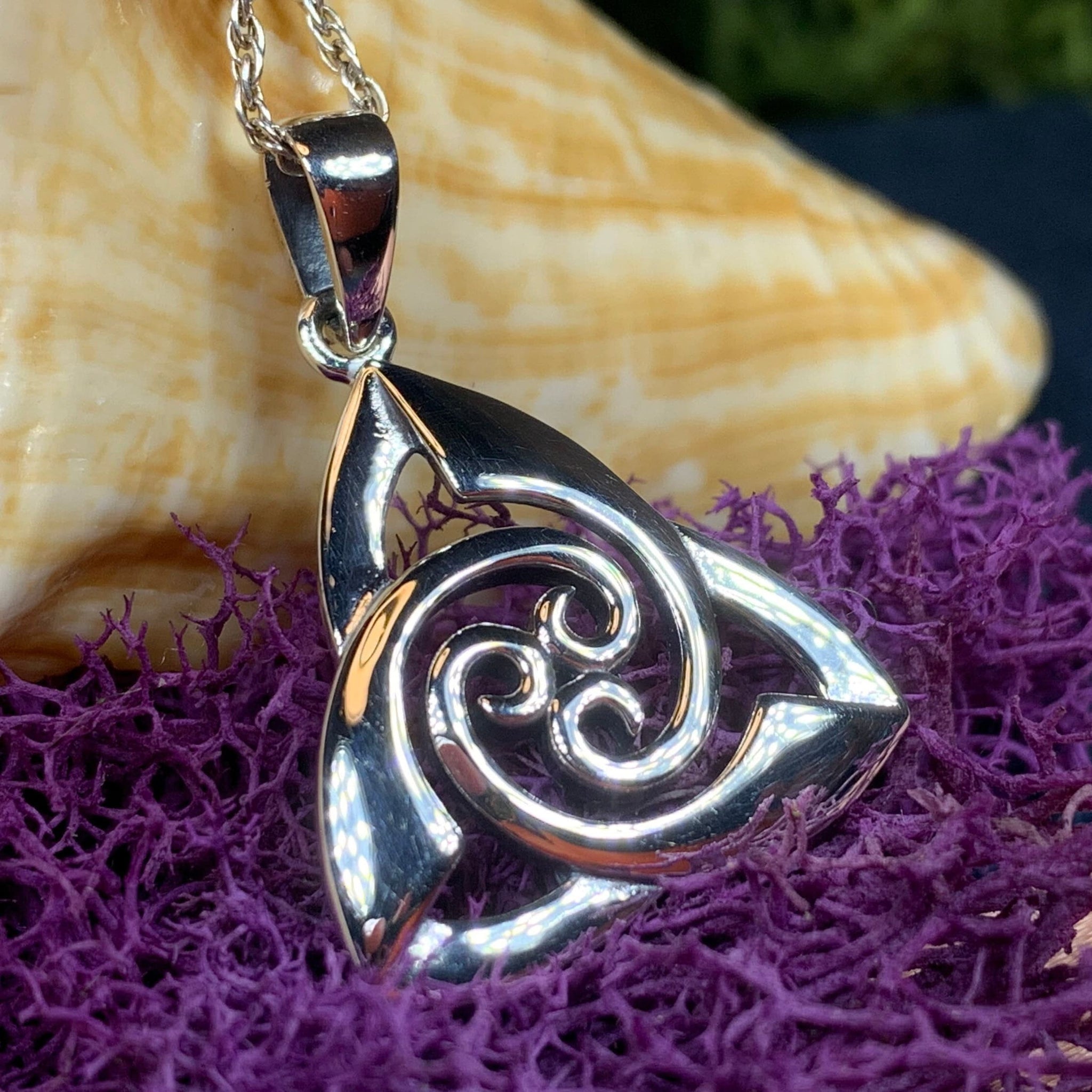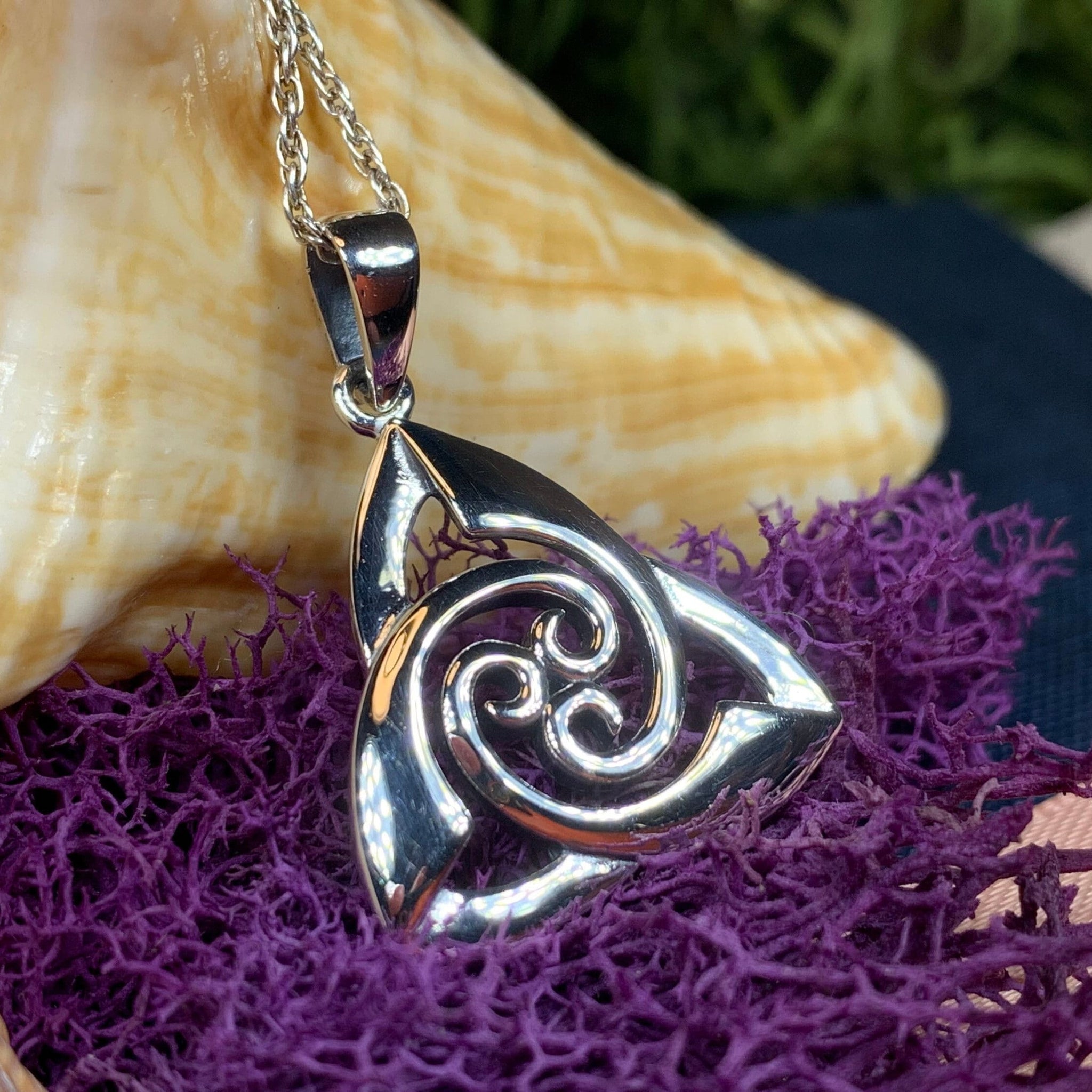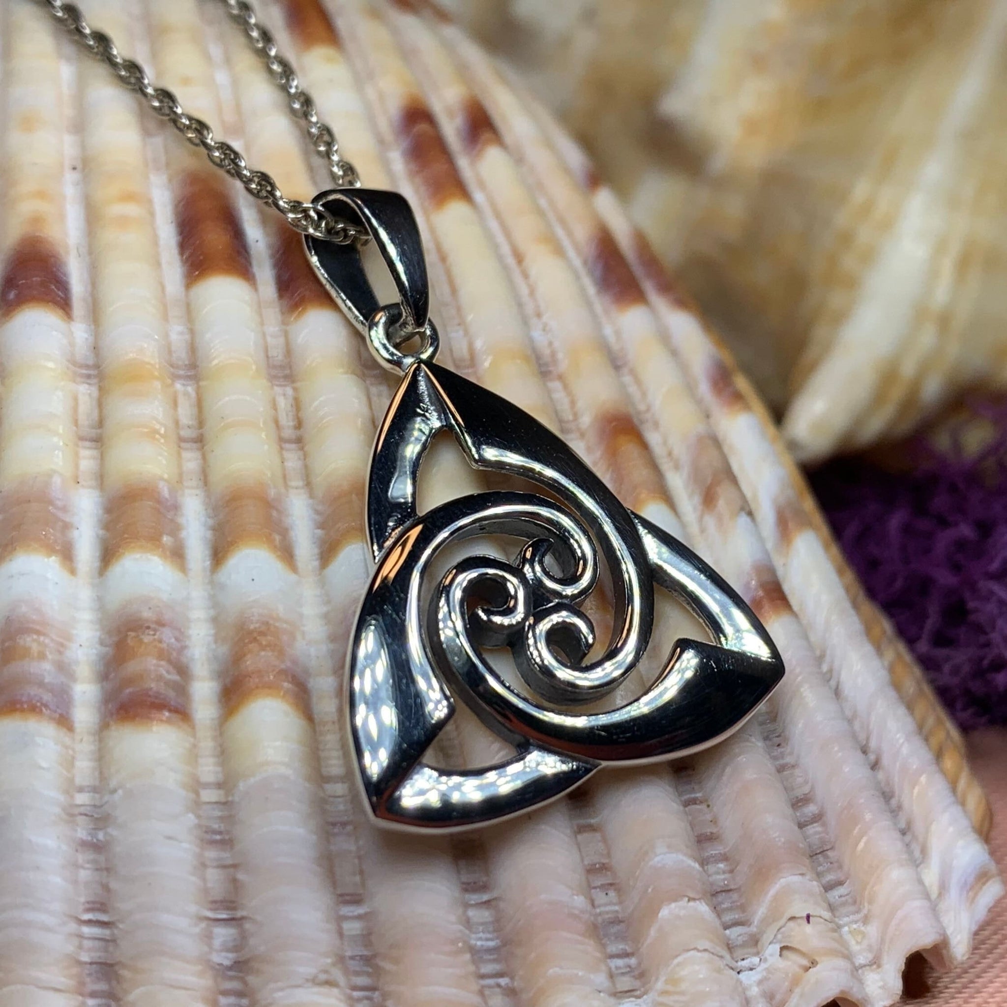 An elegant and modern interpretation of the ancient symbol of the Trinity Knot. The design is fluid and suggests the everlasting power of life and love with the circular swirls in the center.