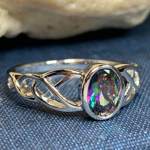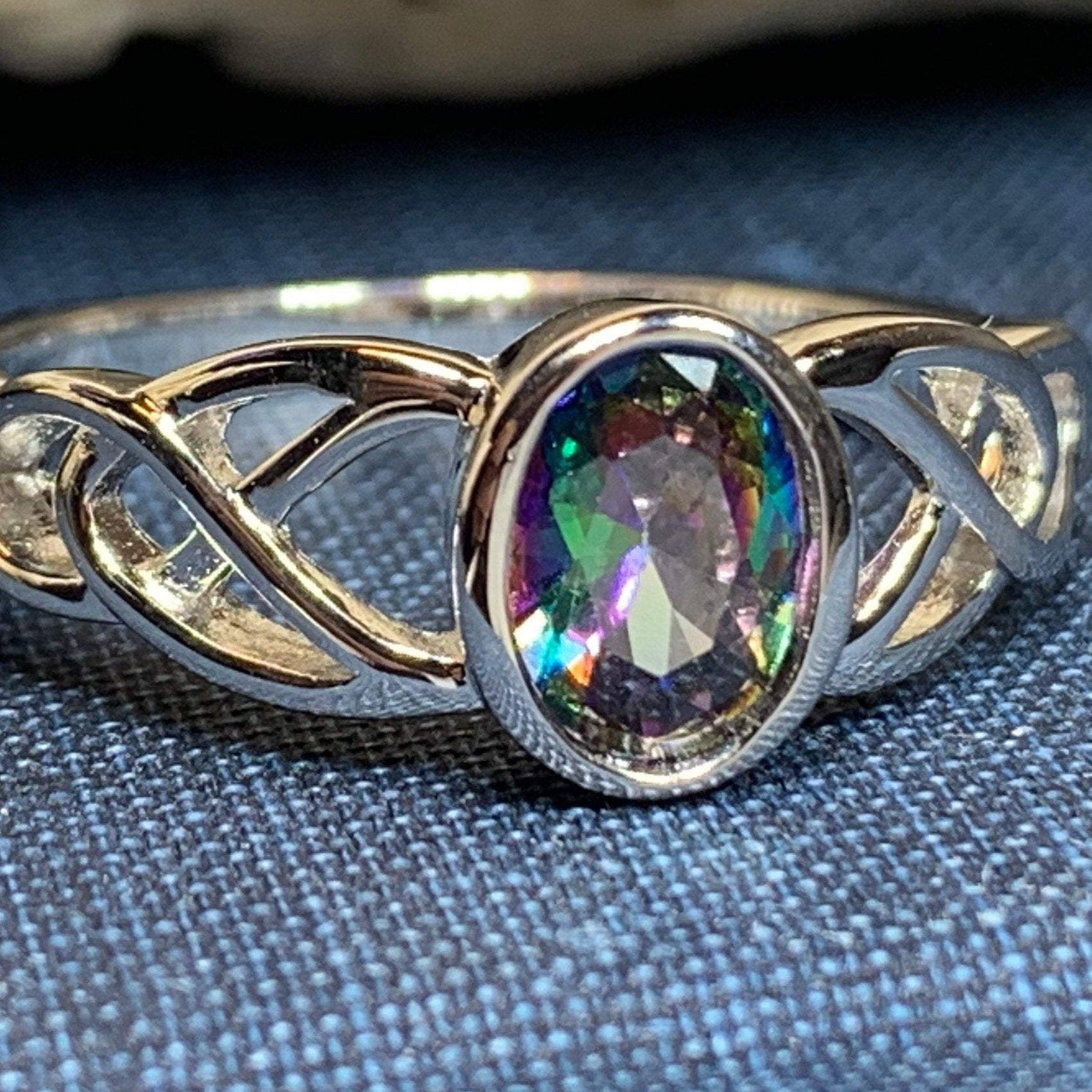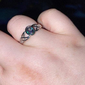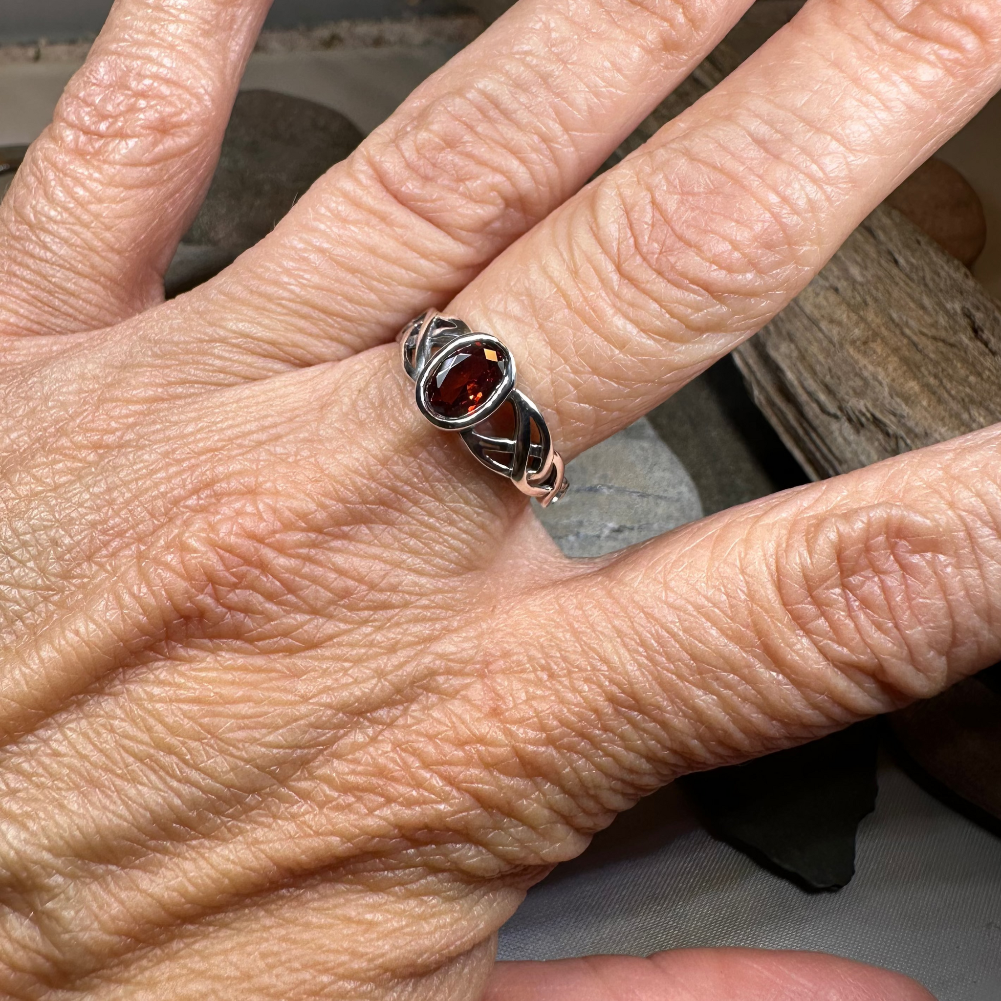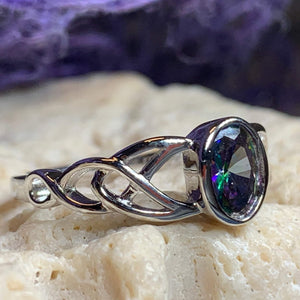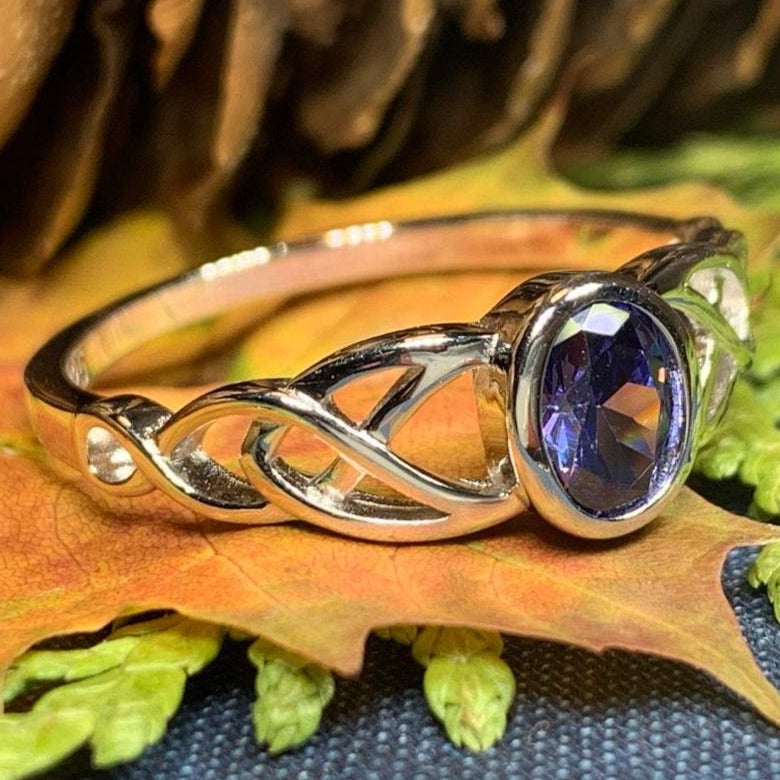 Solid Sterling Silver - A unique design combining the traditional elements of the trinity knot with a modern twist - solid sterling silver with a beautiful oval faceted cubic zirconia gemstone in your choice of color.
