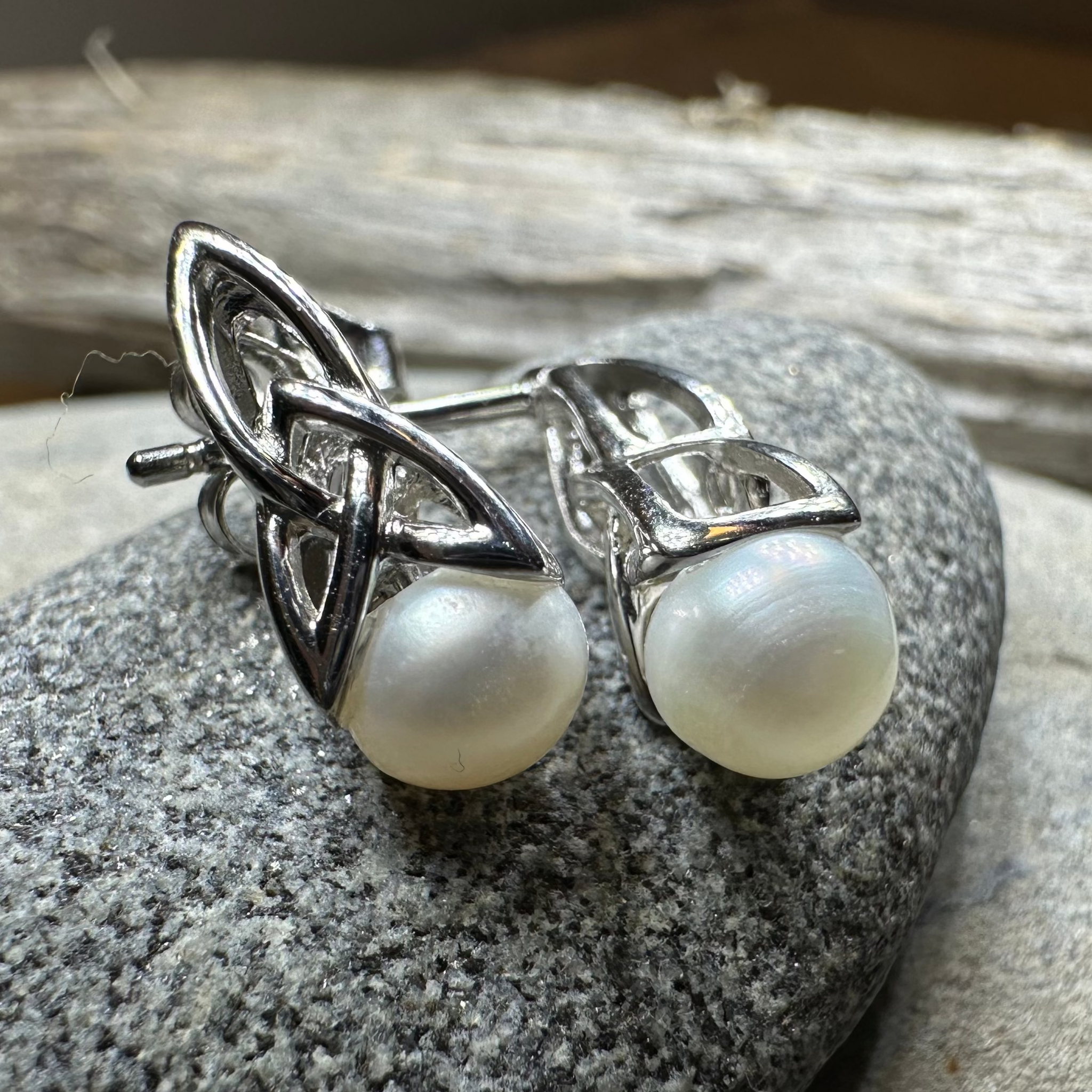 These elegant earrings are solid sterling silver with a natural pearl. They are a perfect pair for everyday wear or for getting dressed up for a night out.