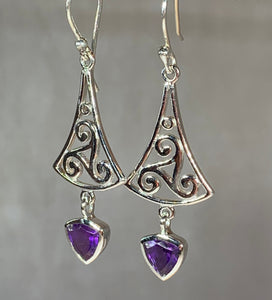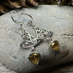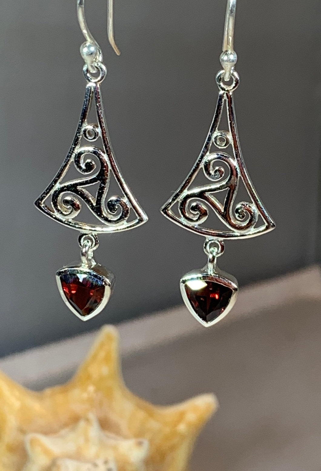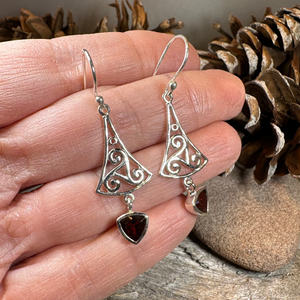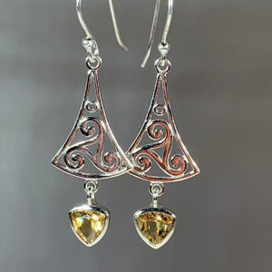 Sterling silver earrings with a lovely faceted Grade AAA gemstone (1.5 carat size in each earring) center stone of your choice: garnet or citrine authentic gemstone dangle.