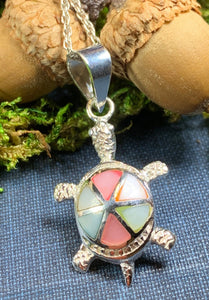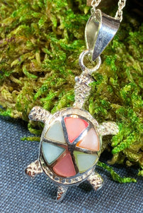 3/4" X 3/4" solid sterling silver pendant - lovely little sterling silver sea turtles with mother of pearl shell inlay on an 18" sterling silver chain.