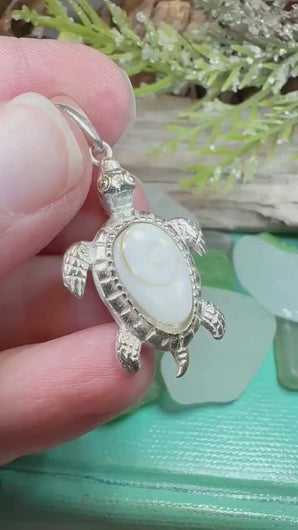 A lovely little sterling silver sea turtle with a Celtic spiral created by a natural shell comes on an 18" sterling silver chain.