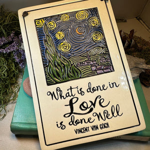 A colorful rendition of the famous painting done in ceramic with this beautiful quotation by the artist. The perfect gift for any Van Gogh fan!