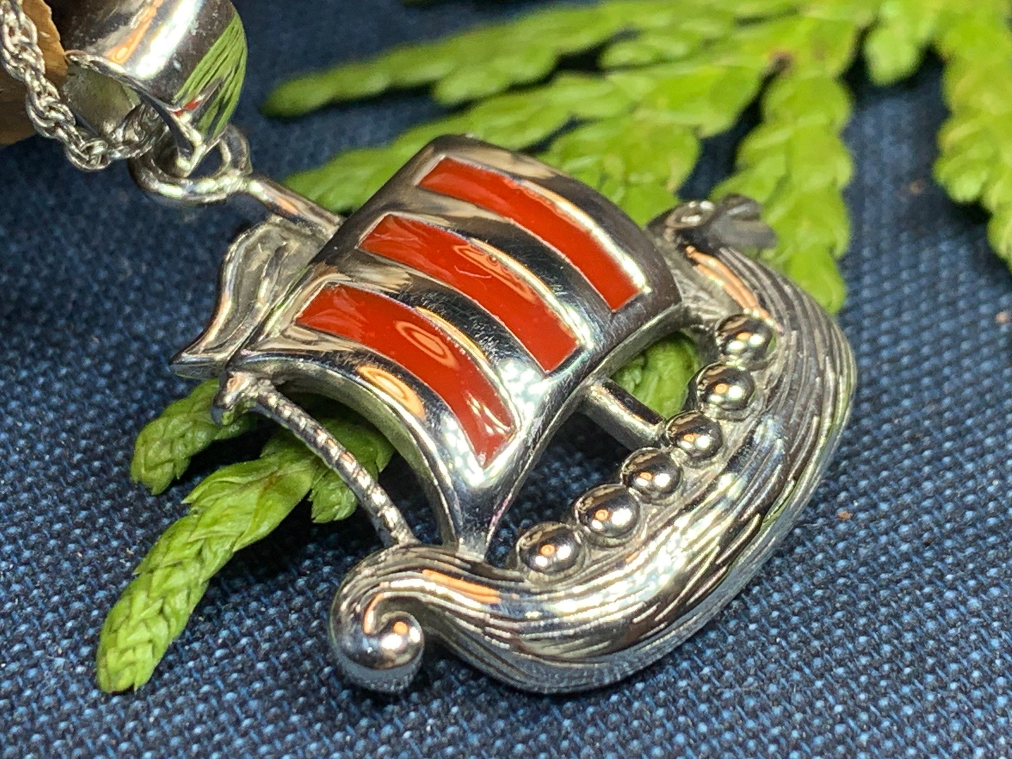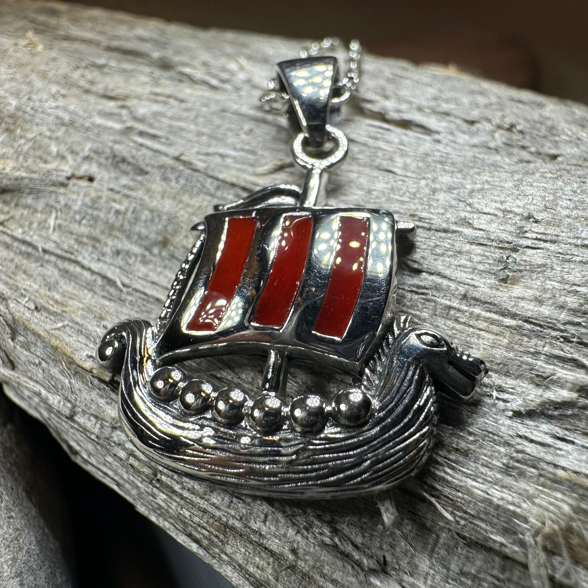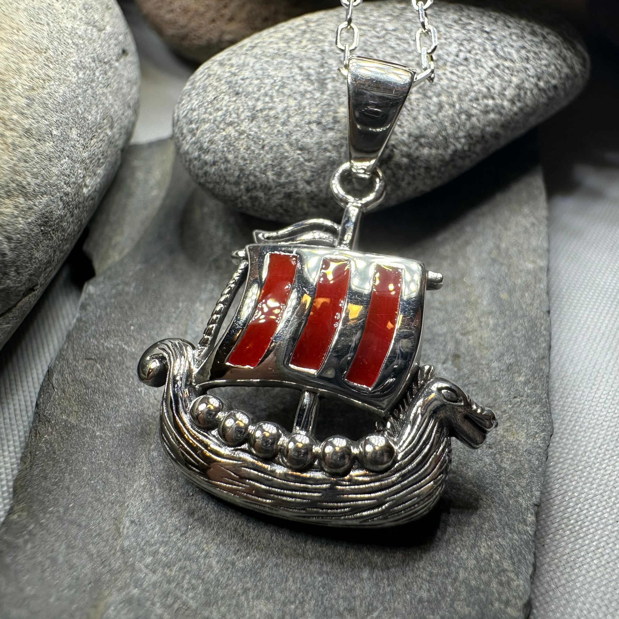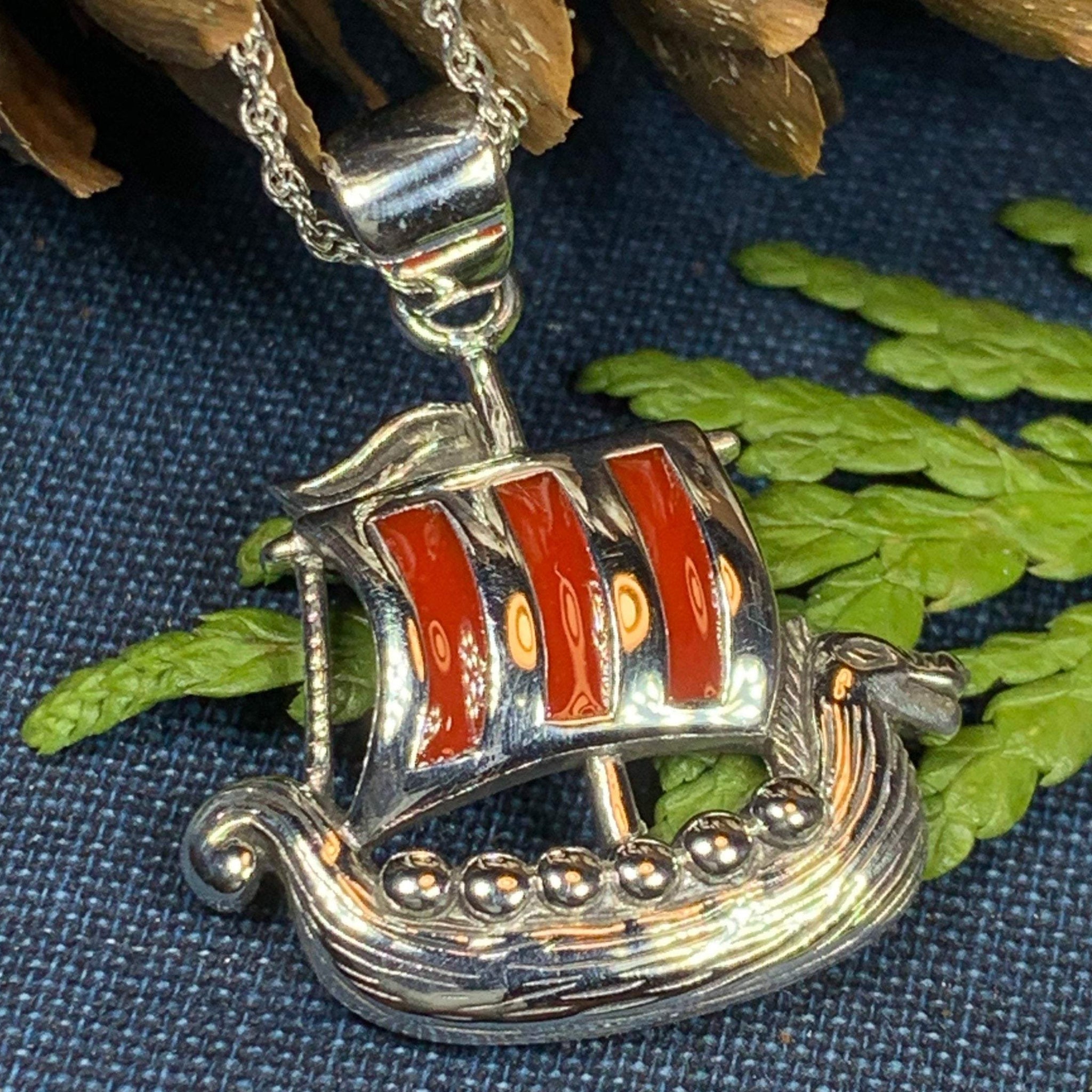 This handsome necklace celebrates their legendary and powerful long ship, which the Vikings used for their voyages of exploring, trading and warfare.