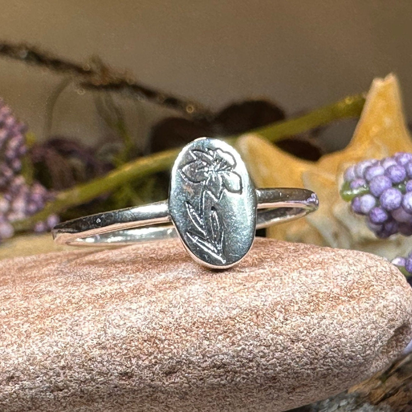 An attractive Welsh Daffodil Sterling Silver ring using a traditional design featuring the daffodil, the national emblem of Wales.