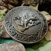 This beautifully detailed brooch shows every bit of this brave Welsh dragon - each scale and claw is picked out in solid pewter. The perfect size for a jacket, tartan, coat or cape.