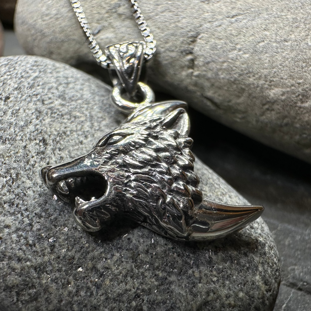 This detailed Viking Wolf Moon will catch the eye. A beautiful design with intricate knot work on the bail with a wolf howling proudly upon a crescent moon.