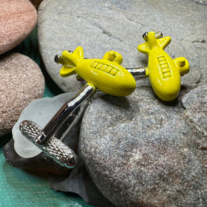 Beautiful Cool Yellow Submarine stainless steel cuff links that feature enamel work and cool detailing.